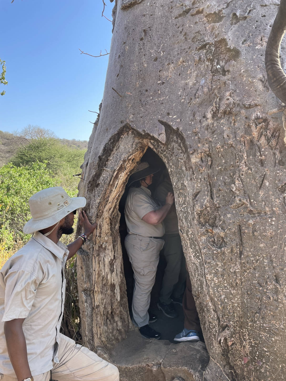 The three Hadzabe tribesman inside the tree with us. 9:25