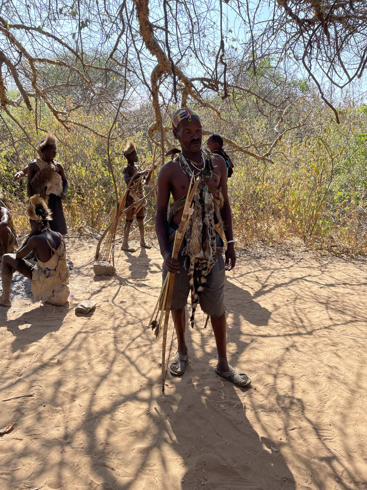 Around the campfire the leader makes animal sounds including baboon. There are different arrows for each animal they hunt.