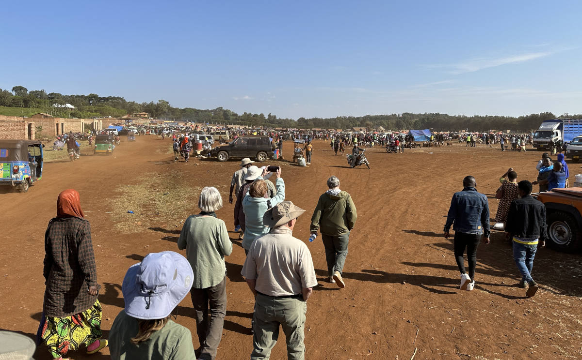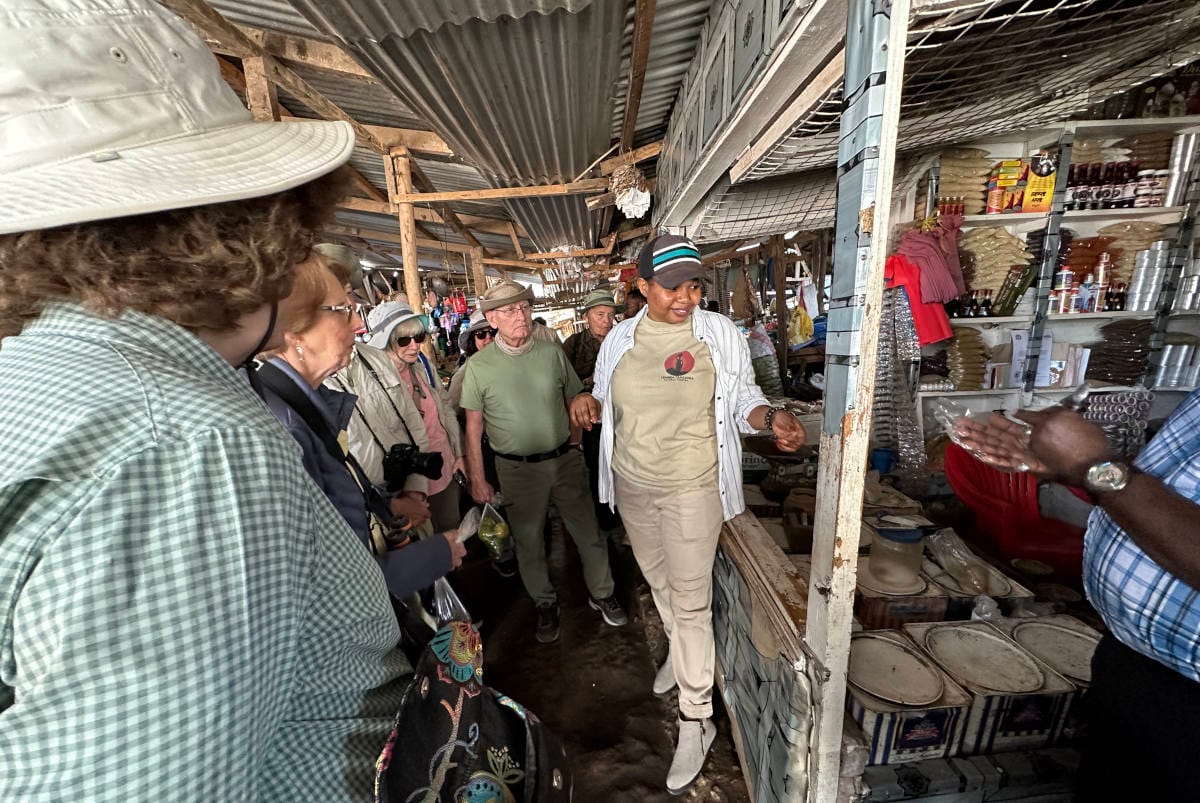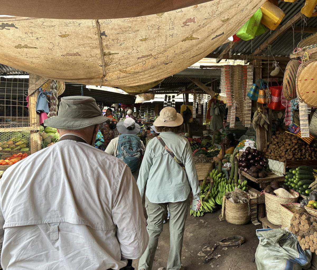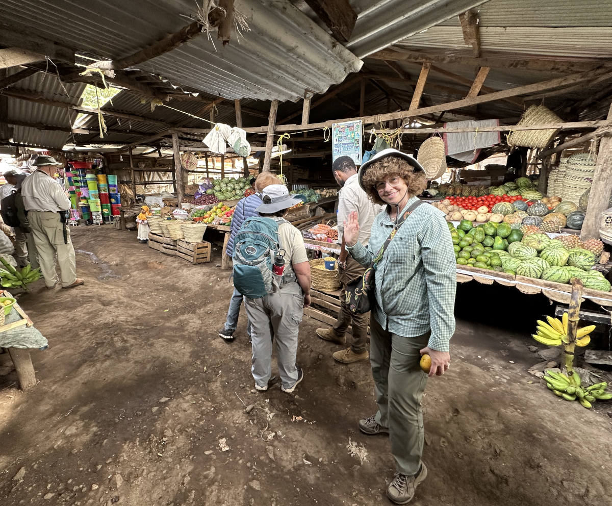 We arrive in the town of Mto Wa Mbu and stop at a food market. Our local guide Angel sends each couple in our group to look for certain produce items.