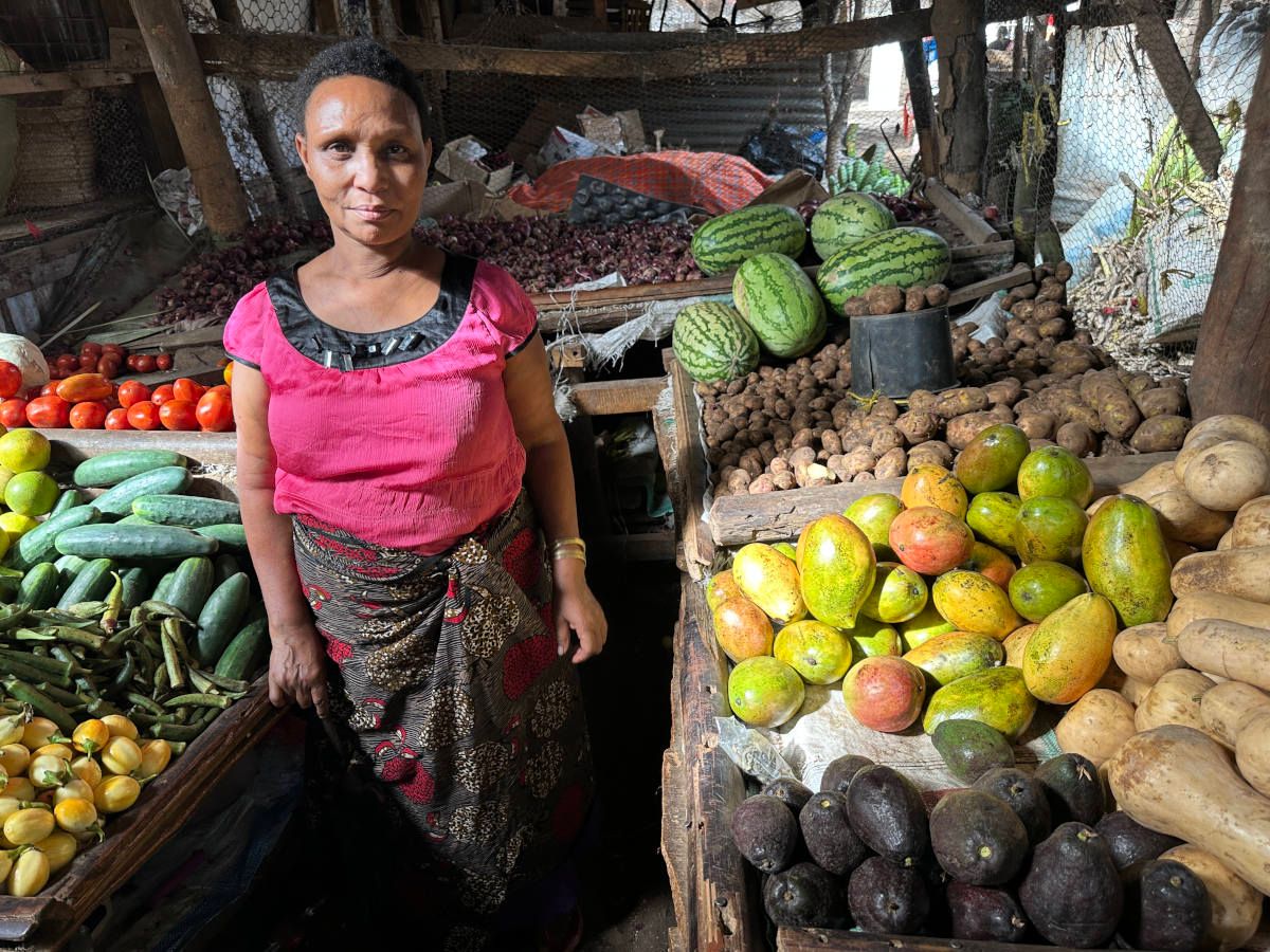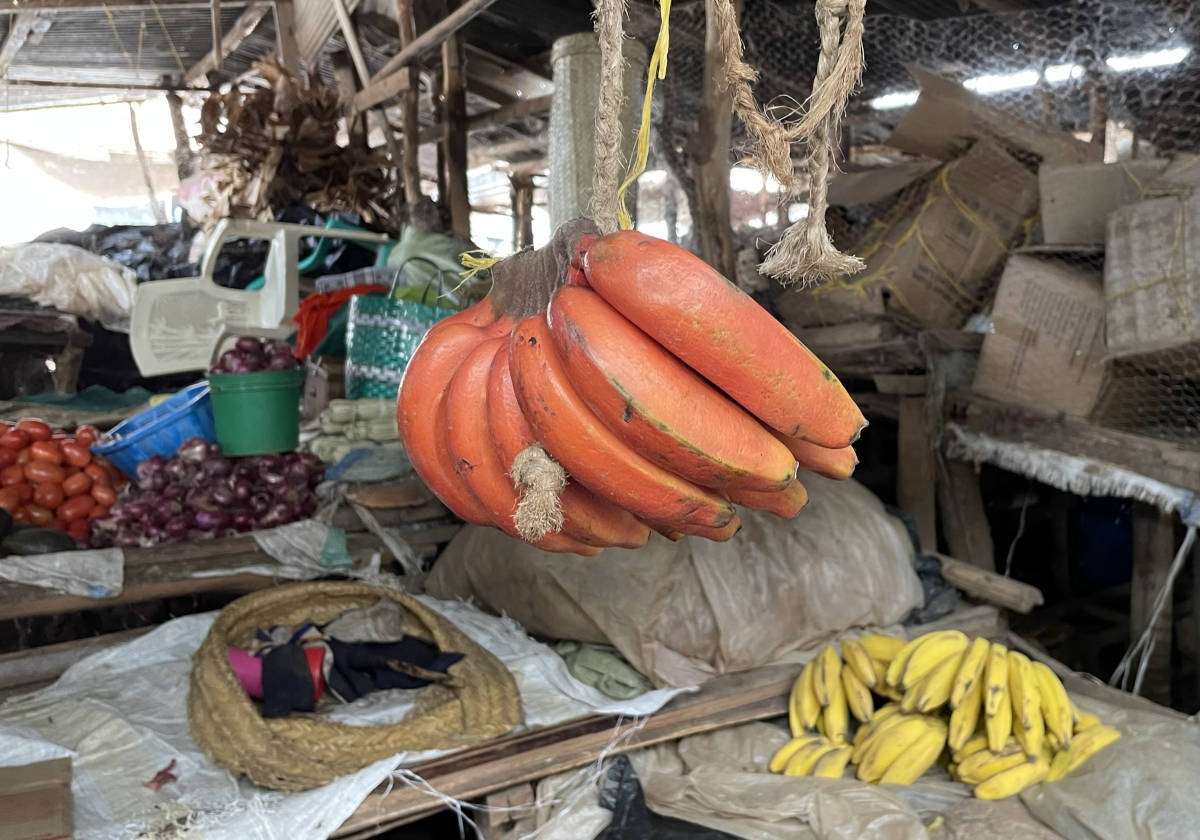 We start our search. We're only given the Swahili name of the item. Linda and Emerson are tasked with finding and purchasing embe with 2000 Tanzanian shillings.