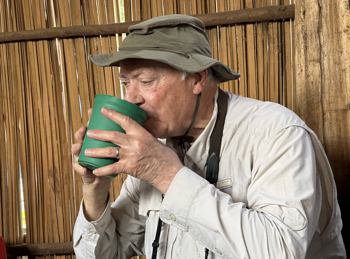 Mike samples the beer. The cup was passed around and we all had a sip.
