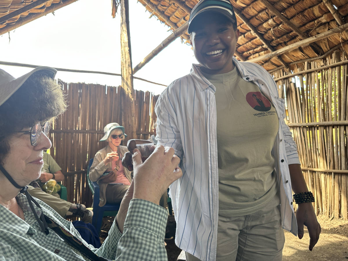 As we get ready to leave this village our group sees a young Hadzabe having a new experience!