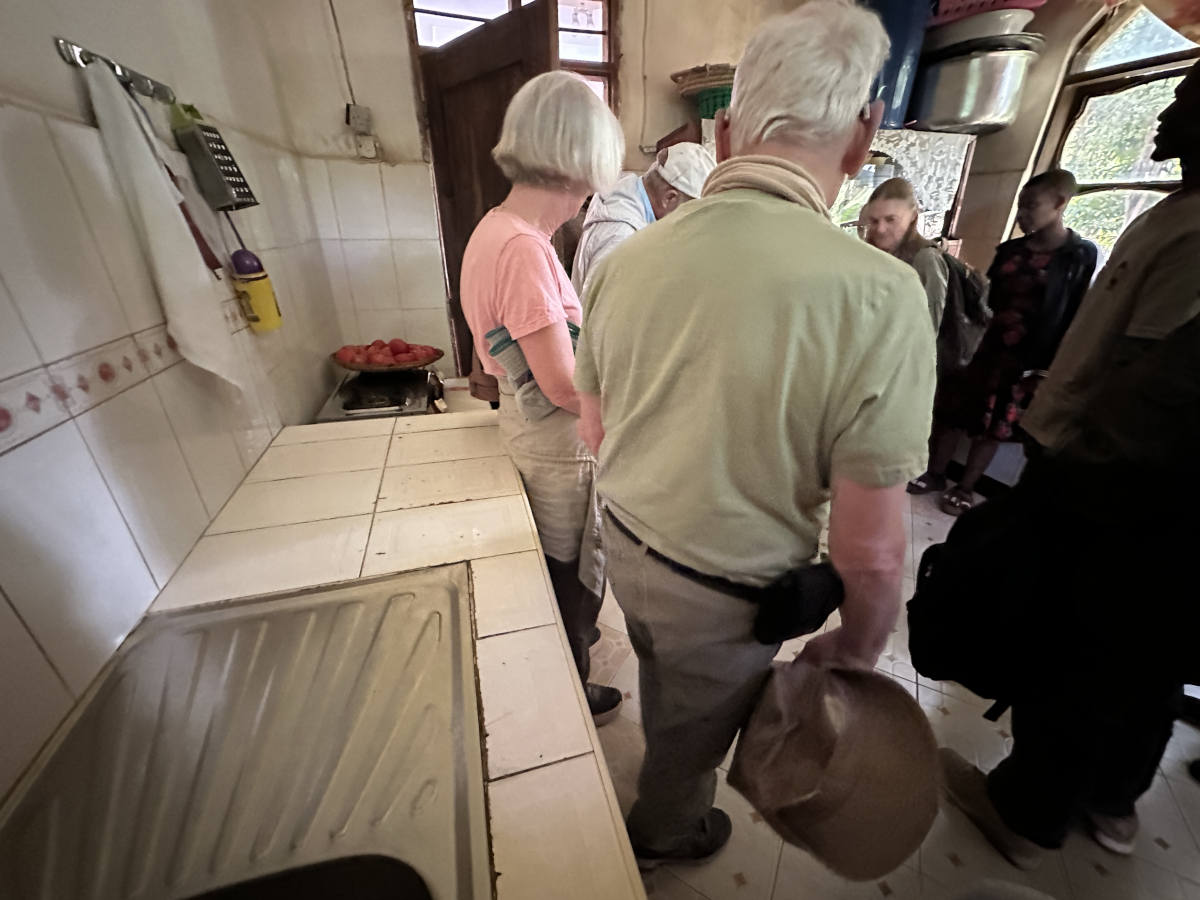 We enjoy a look at their outdoor kitchen where lunch is being prepared for us. Allen and Debbie here with Mama Frank.