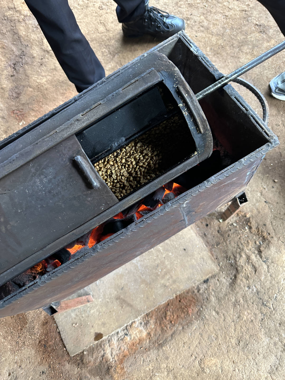 Mike turns the roaster.