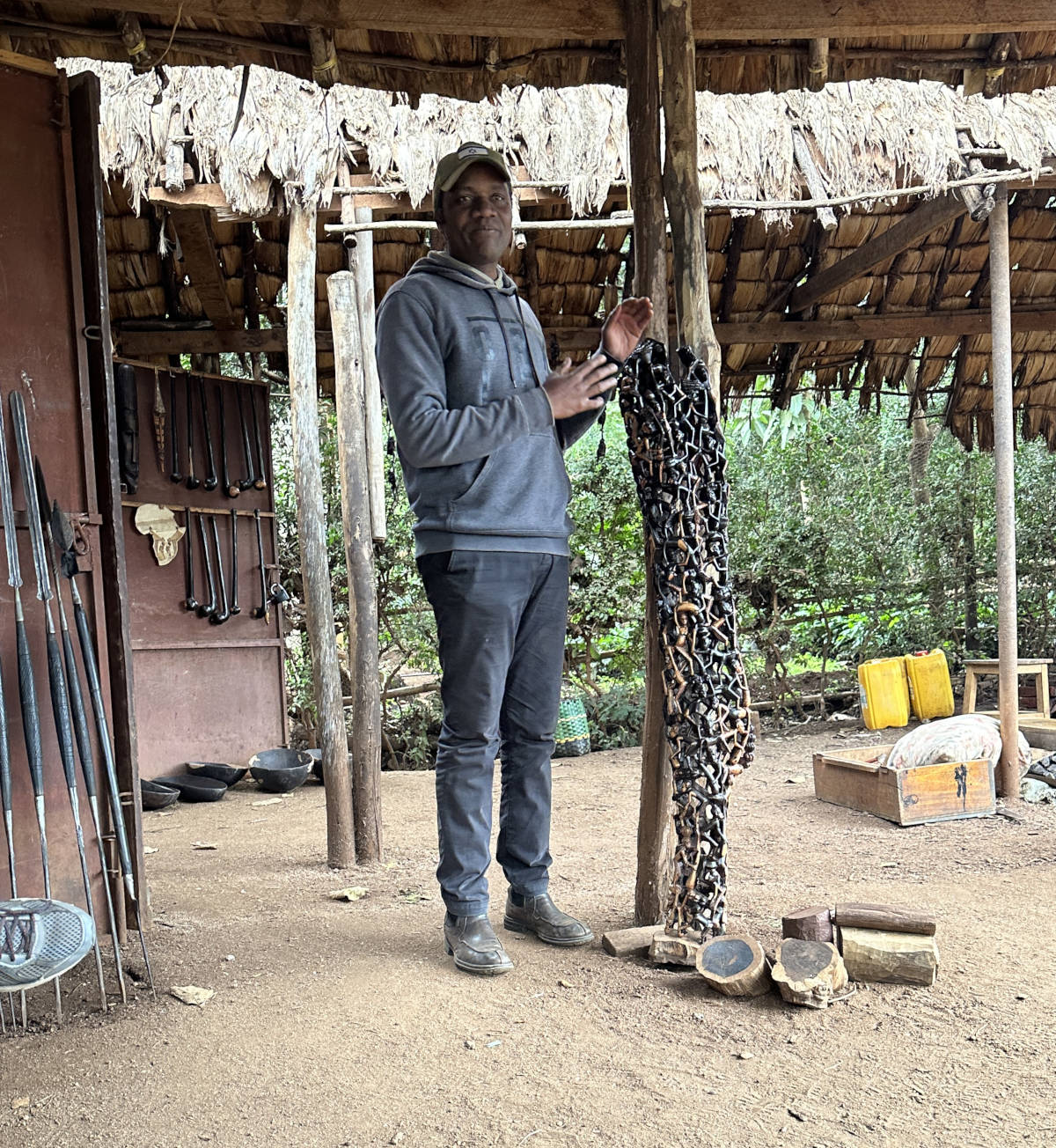 Wood carver shows us ebony wood...
