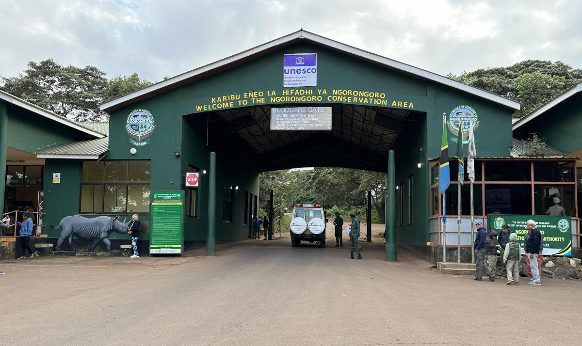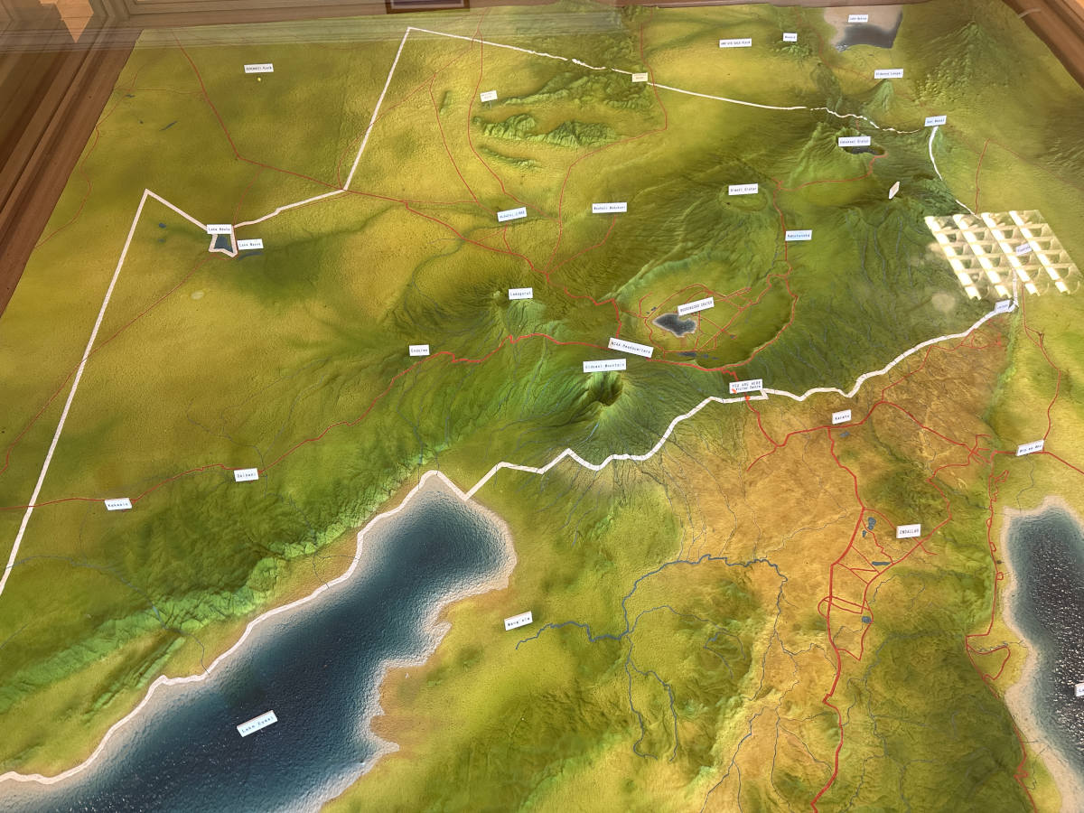 A display of the conservation bounderies. Inside the conservation area is Ngorongoro crater which is the collapsed caldera of an ancient volcano.
