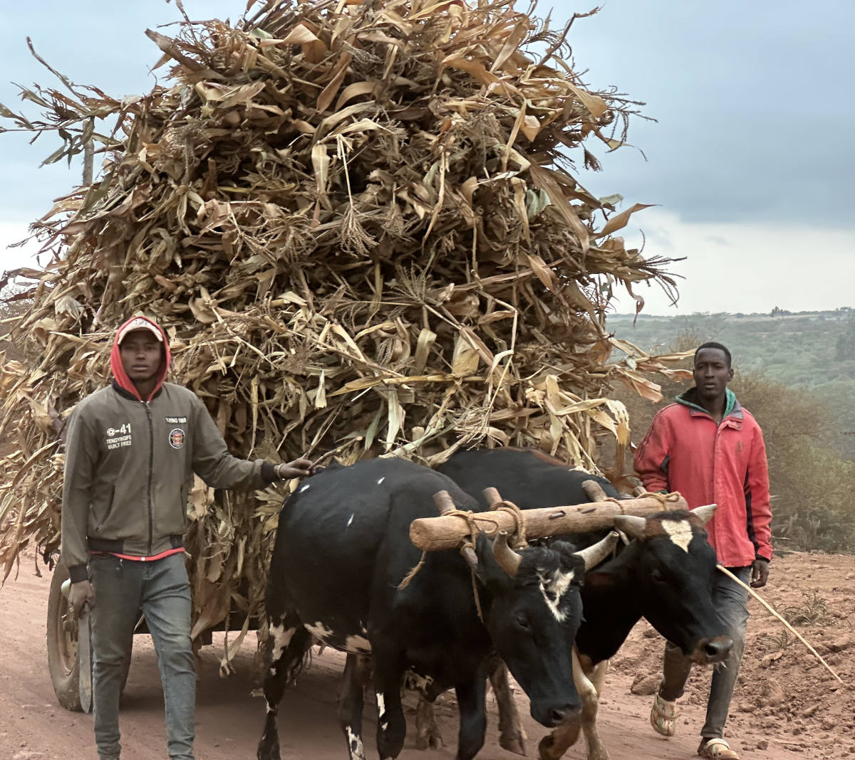 As we head out the next morning, we see that it is harvest season and they are collecting corn stalks for their cattle.