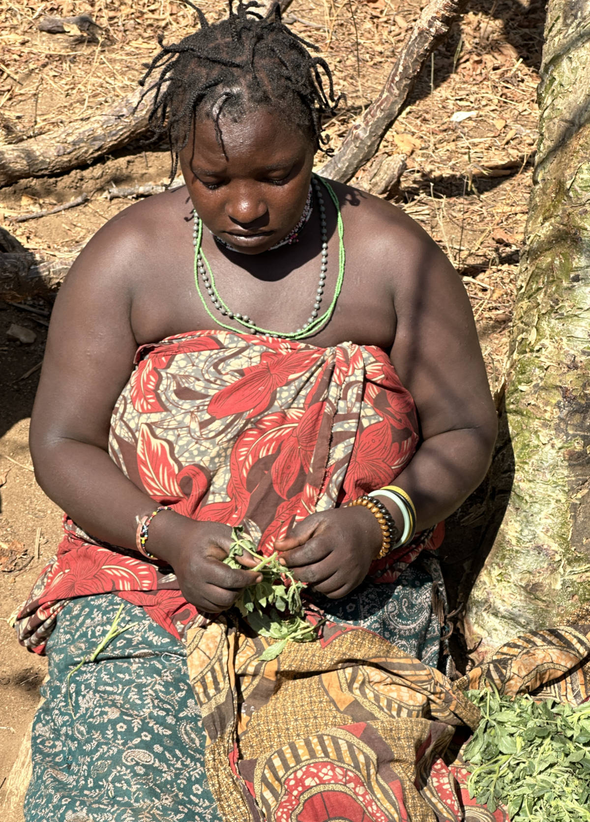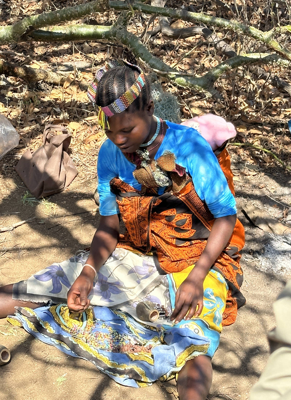 Hadzabe woman doing some beadwork. 10:37