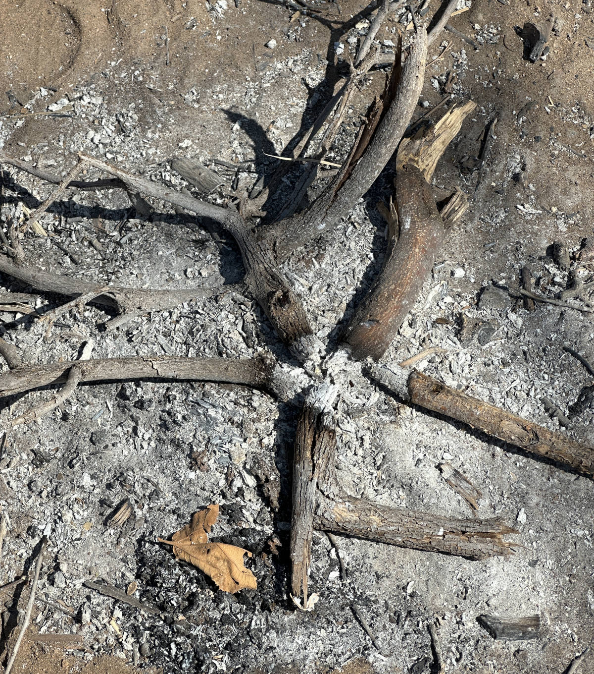 Close up of recent fire shows an economic use of the wood.