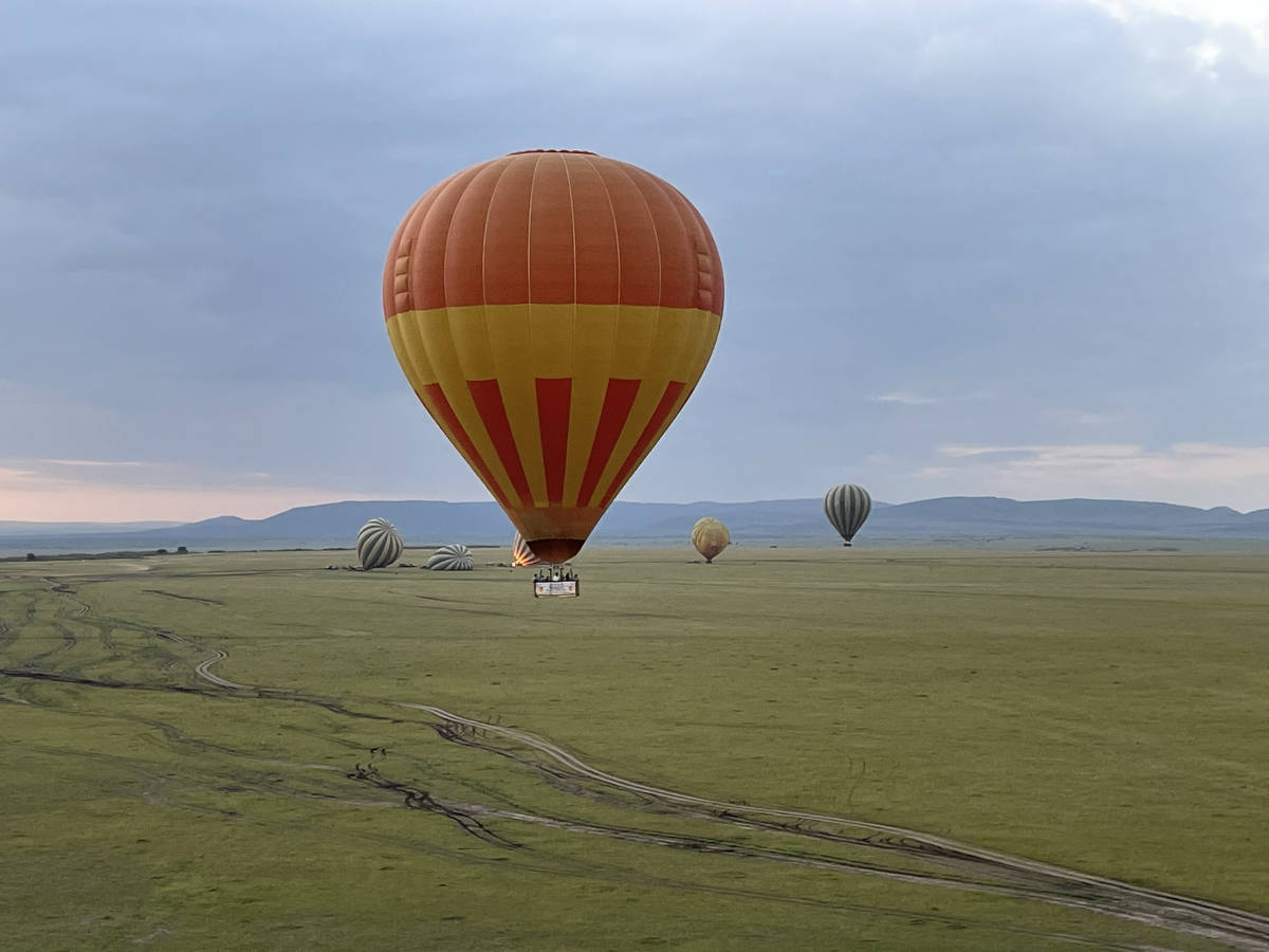 Linda and Emerson are going for a balloon ride over the Masai Mara. Advised not to be outside without an escort after dark, we found our escort ready for us outside our cabin promptly at 4:15am, to accompany us to the main lodge! (BTW-we were given a whistle attached to our room key to use if we had any problems at night).