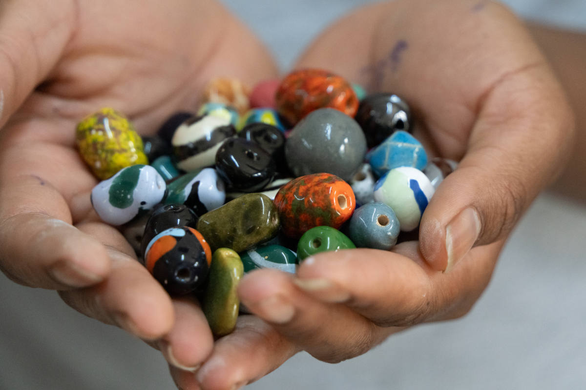 Our KOBE guide Natalie explains the process of making the clay used for the jewelry.