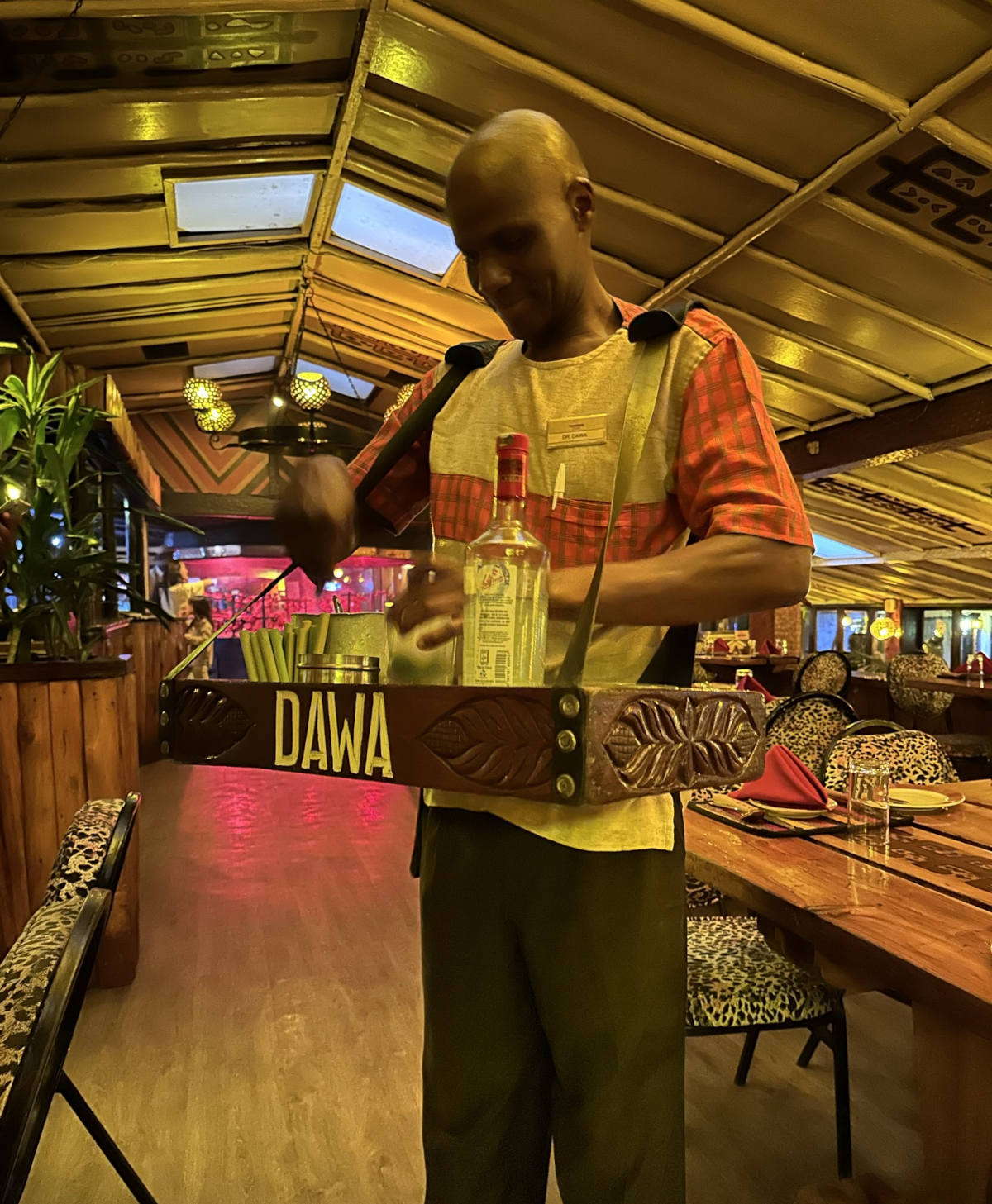 "Would anyone like to try our local drink DAWA?" Dawa means medicine in Swahili.