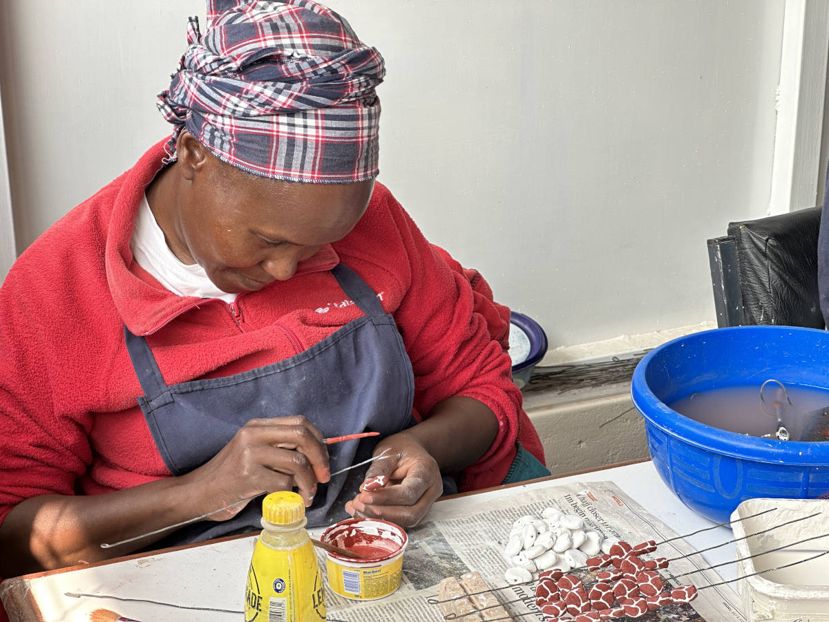 We then visit several different areas in this entirely women owned bead facility. The song we're greeted with here is one often sung to tourists in Kenya and Tanzania.