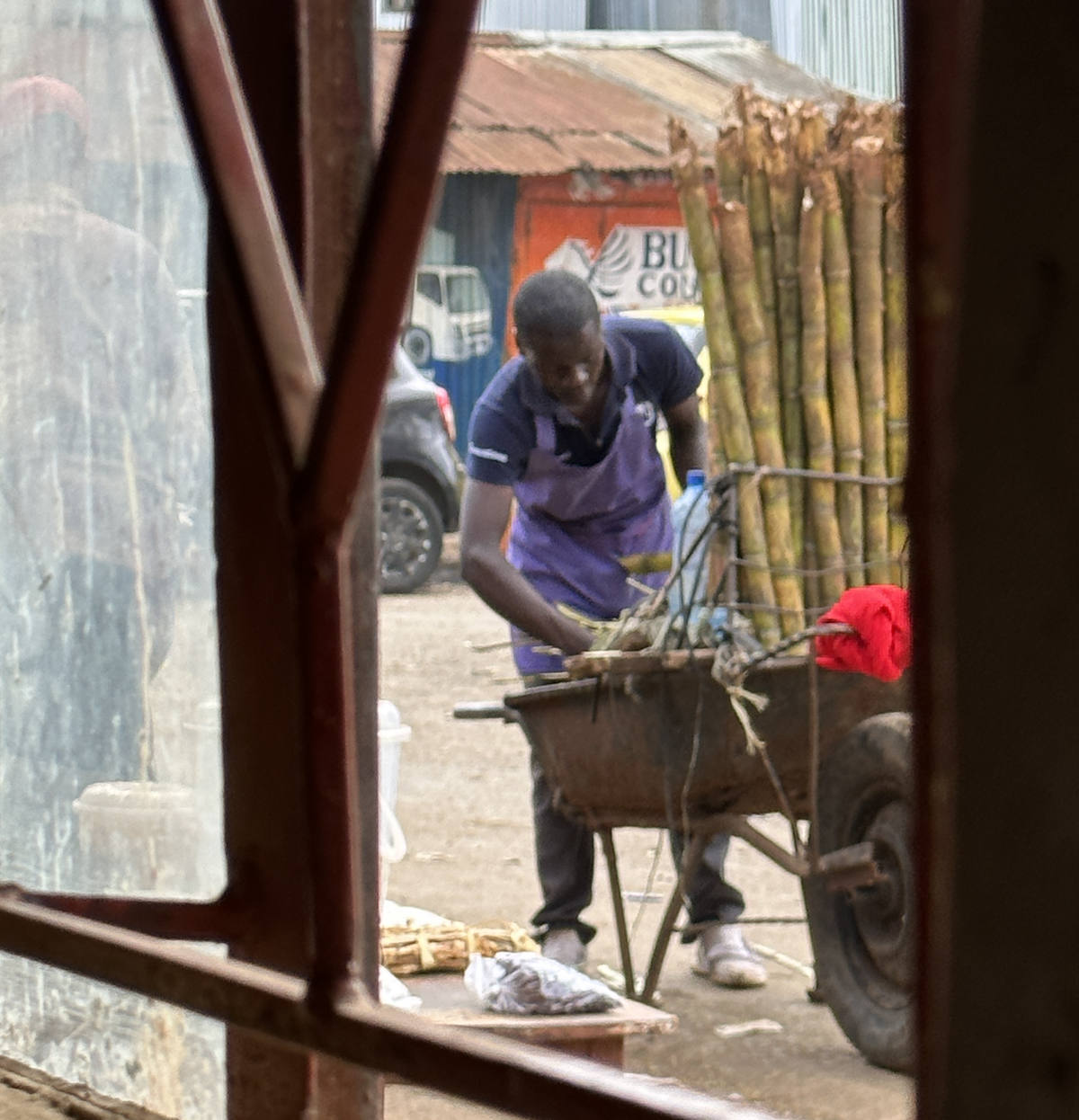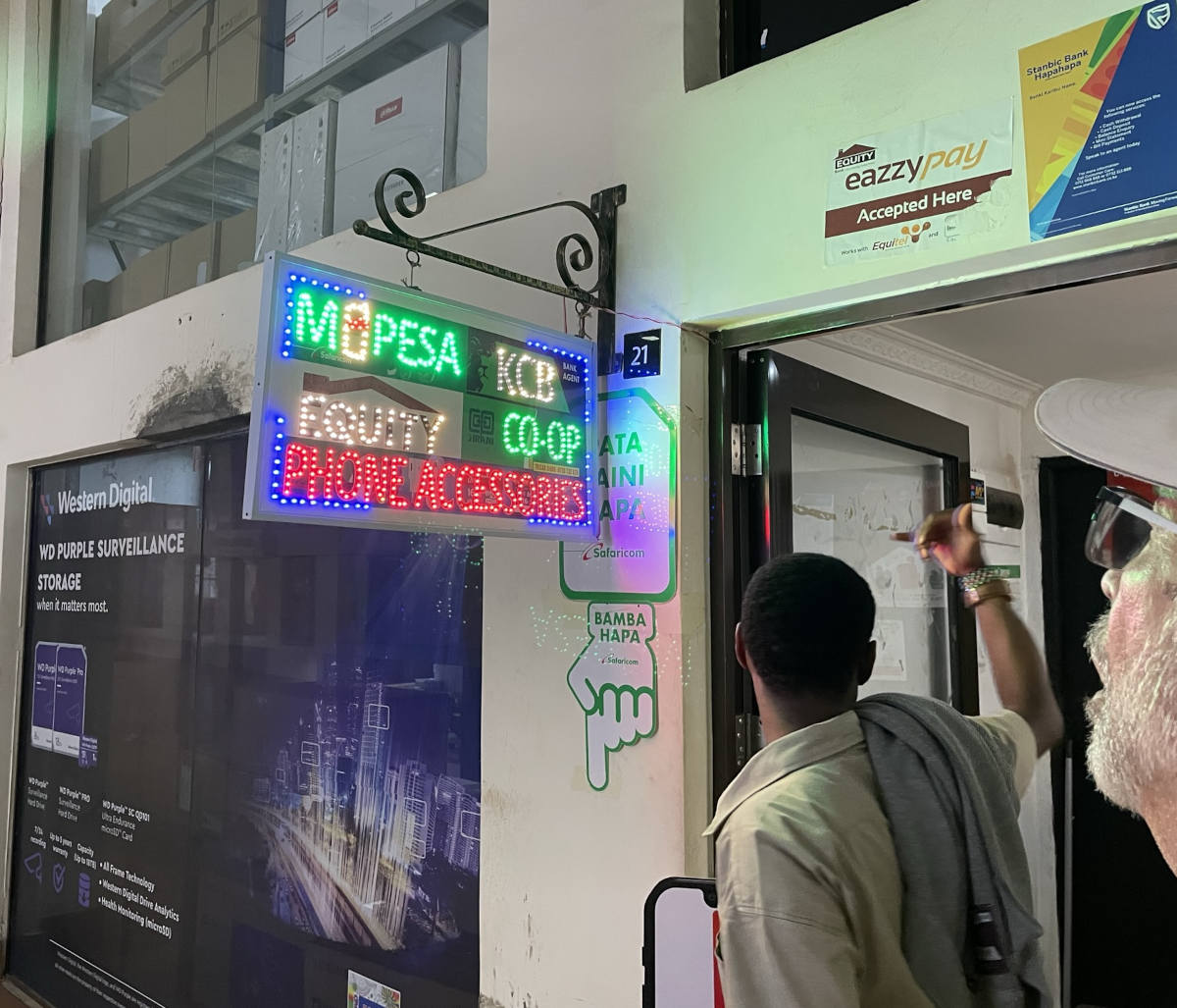 MPesa Exchange at the Mall across the street from Hotel EKA. We visit this small shop which serves as an exchange and a virtual bank, while Allen tells us about the MPesa history. MPesa signs are everywhere. 4:45pm
