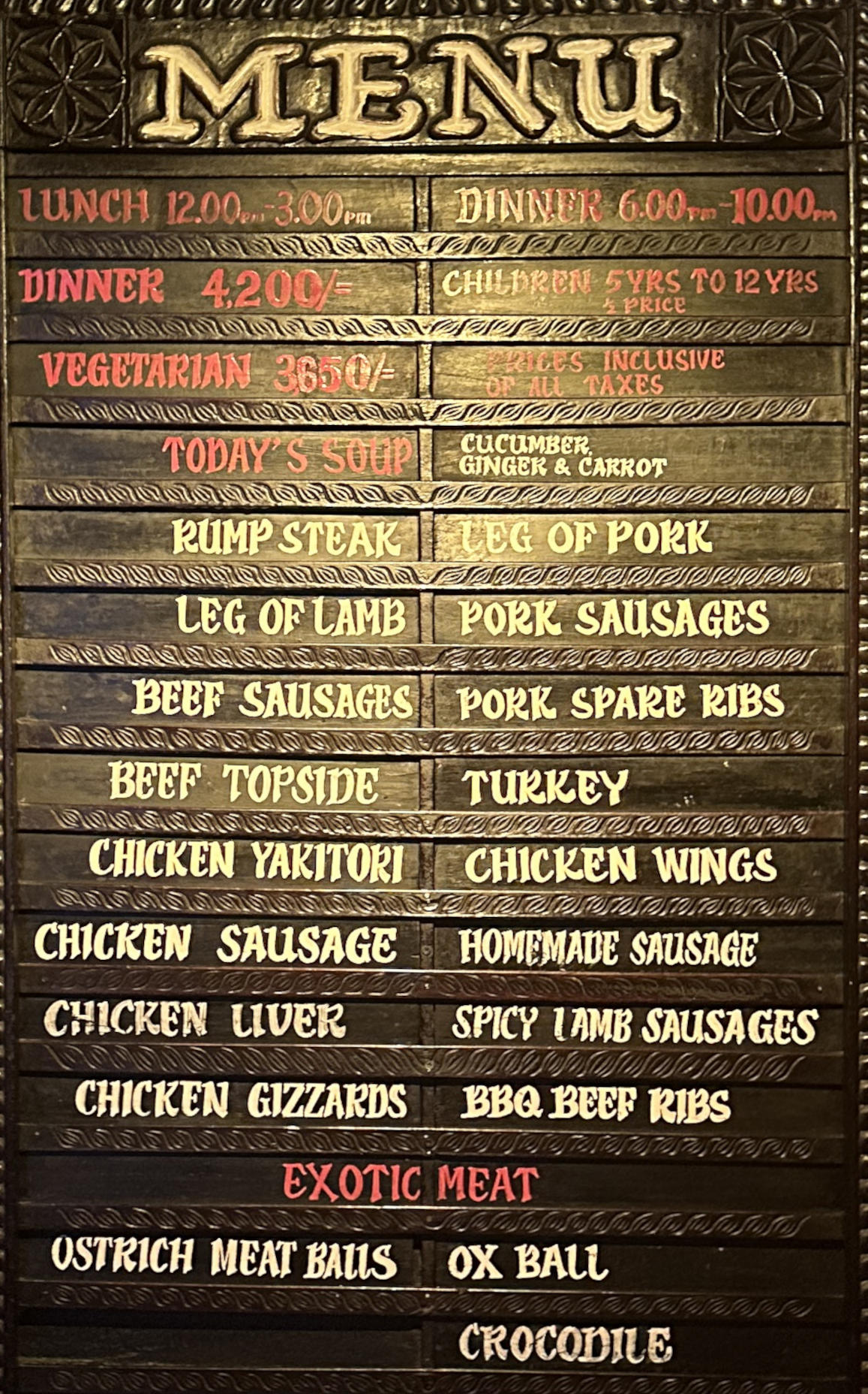 In the evening we dine at this restaurant, Carnivore. 6:30pm