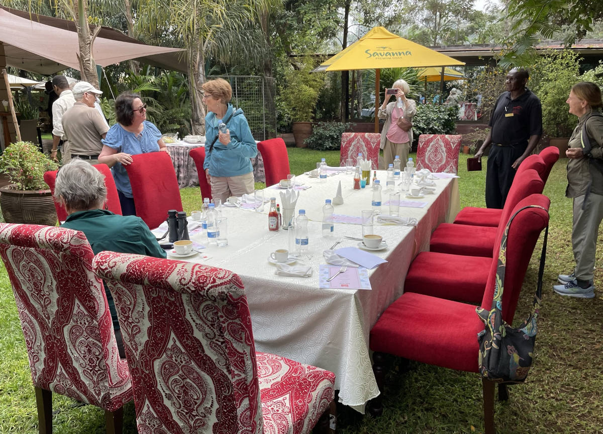 Josh, an OAT trip leader who had trained under Allen last year, is wearing his Masai clothes to breakfast this morning. His group's tour began the day after ours. 8:45AM
