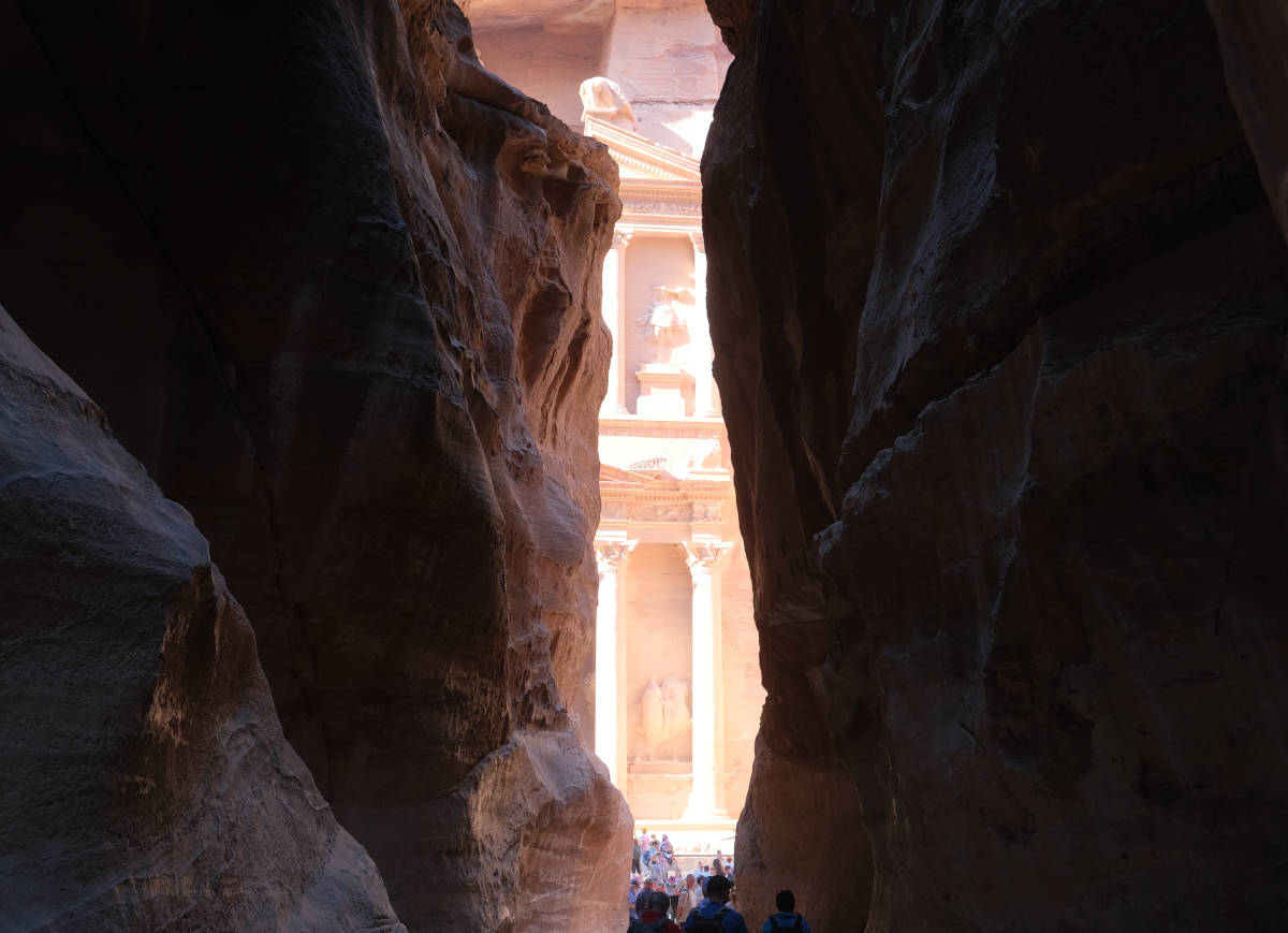 Walking into the Petra historical site. 8:58.