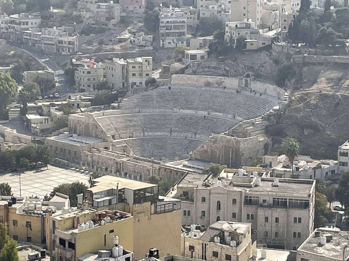 From the Citadel looking towards the Roman amphitheatre. Our tour was scheduled to visit the amphitheatre but our tour guide thought that going to the Jordan Museum was a better use of our time. He was right. 10:35
