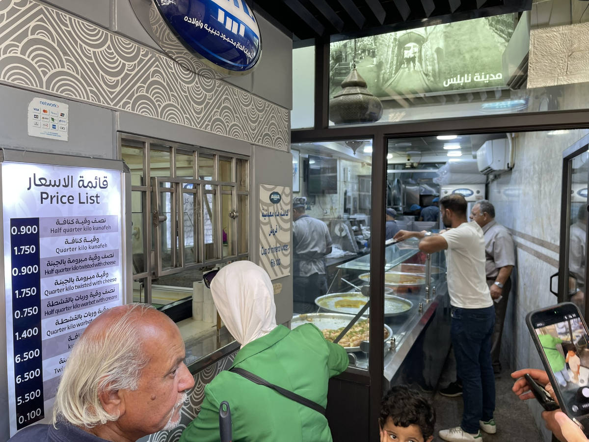 And a desert at a small shop with a line of locals. 1:06