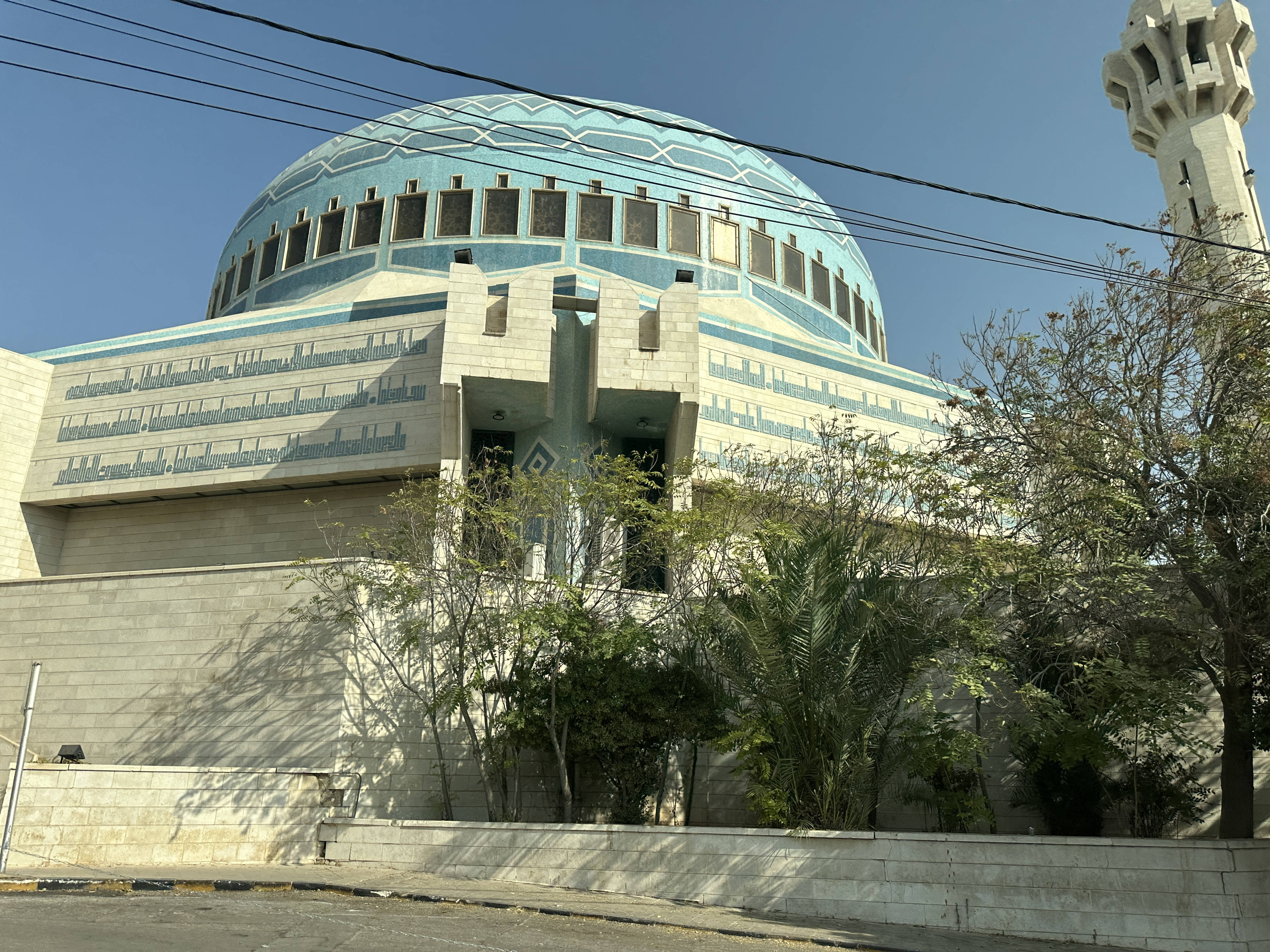 We drive through a nice neighborhood in Amman and pass by the King Abdullah mosque. 10:15