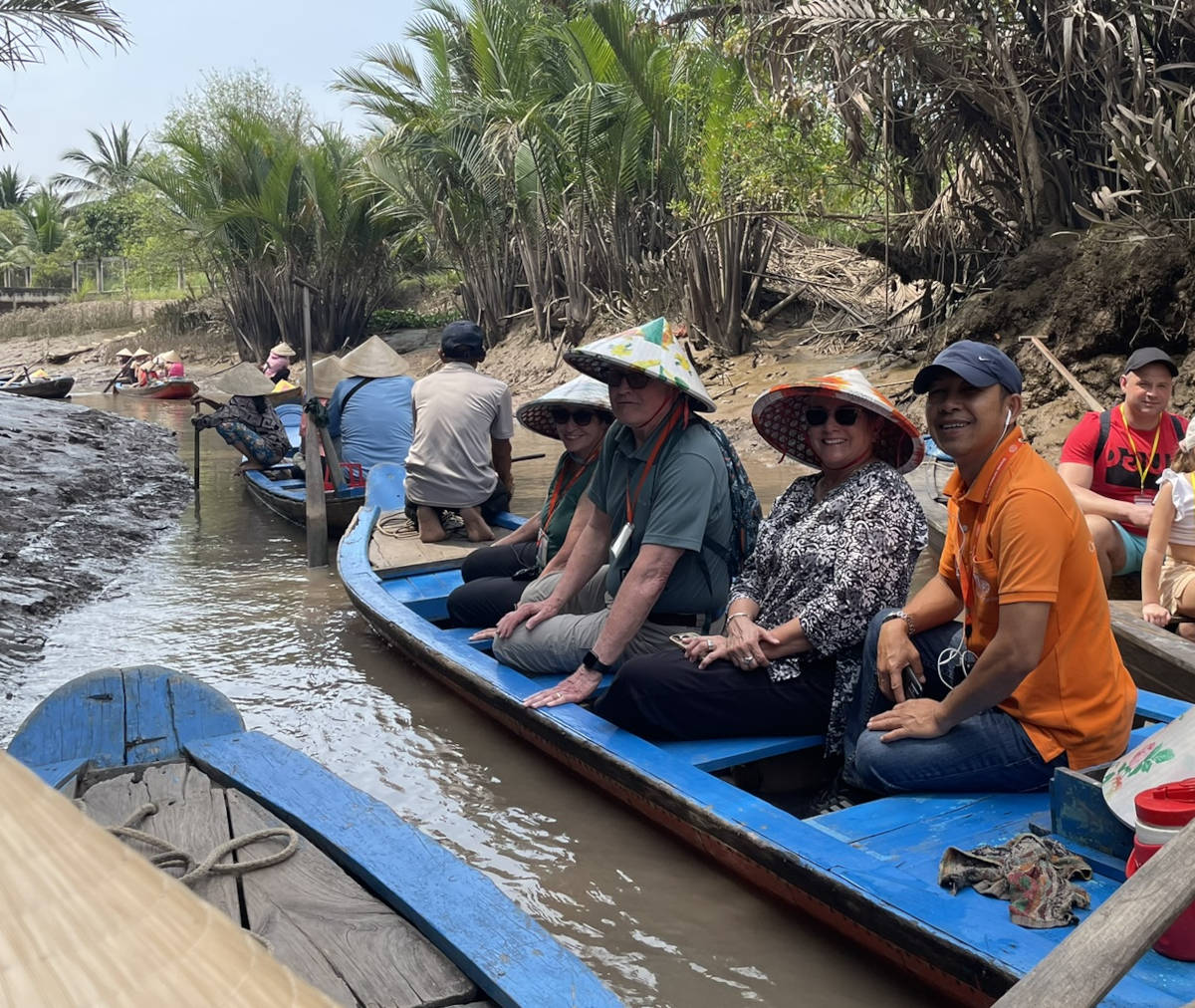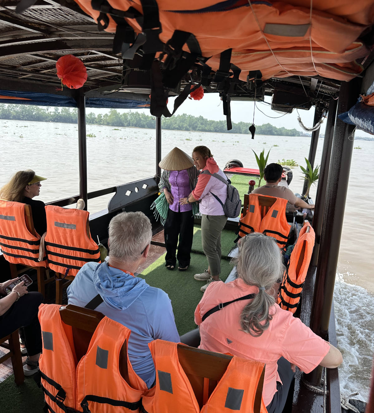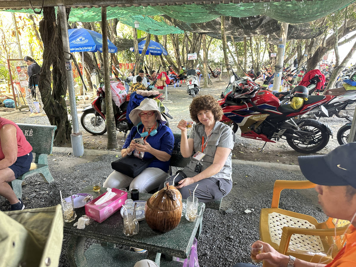 Boarding a bus headed to the Mekong Delta, we meet Shirley our very friendly South Vietnam local guide. We learn a bit about her - she's 36, single and lives at home with her parents and her sister. She commutes about an hour(?) on her scooter to join us. 8:15am
