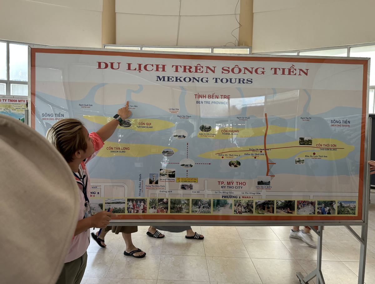 We arrive at My Tho and Shirley explains our route. 11:00am