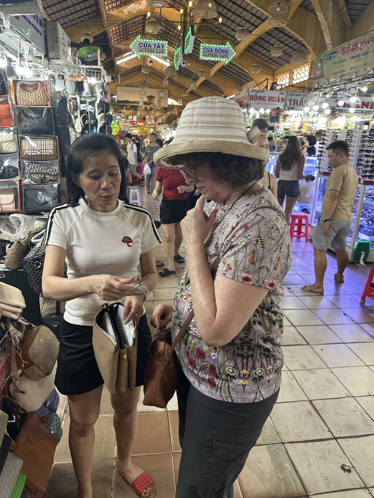 Linda replaced a hat lost earlier on the trip and also purchased this "Prada" purse complete with authenticity certificates. Sensing it's inauthenticity, Linda bargained down from $200 to $25! Emerson bought a nice leather belt.
