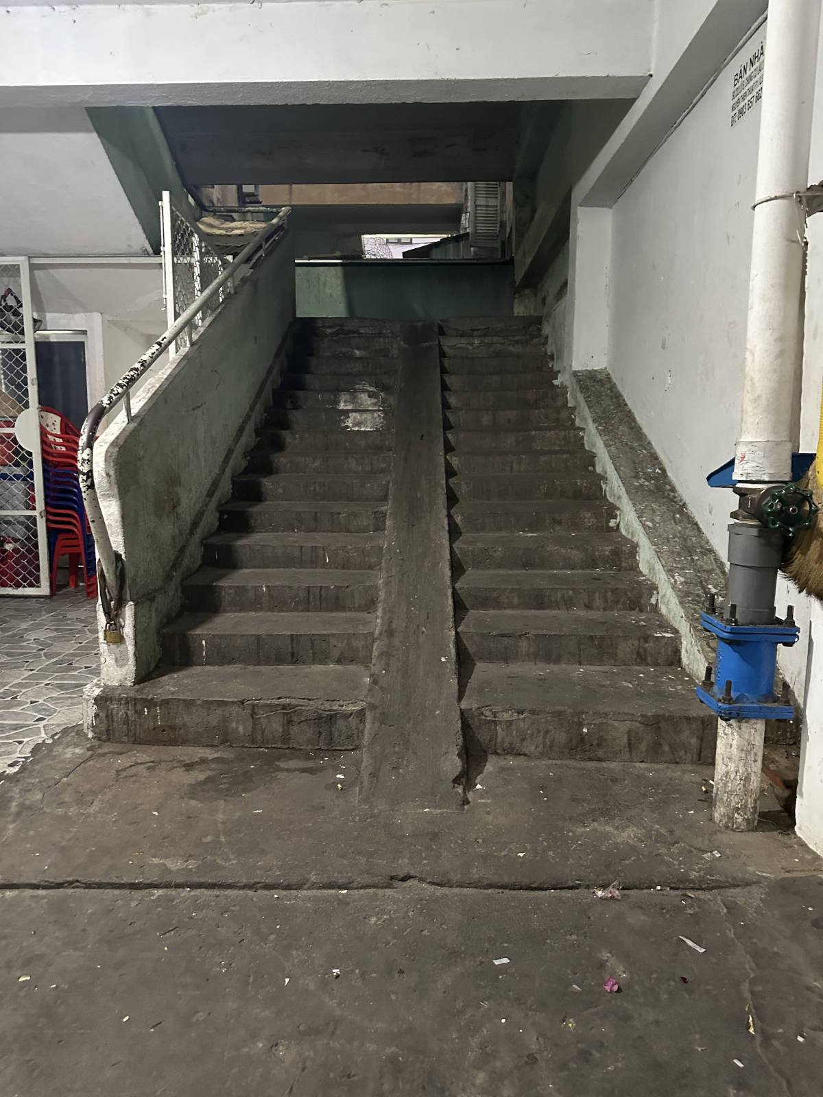 The ramp in the middle of the steps is for pushing your scooter up to your apartment. Some people rent spaces on the ground level for their scooter storage. 6:11