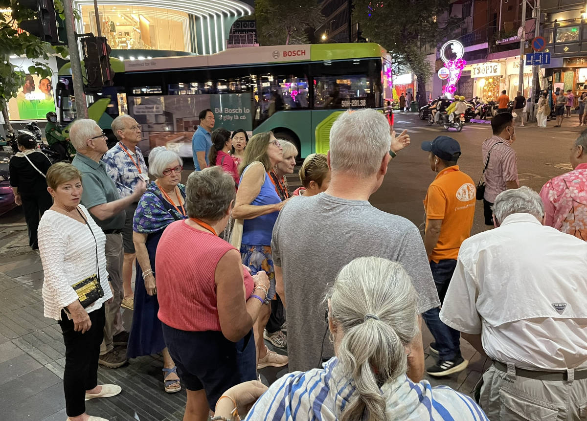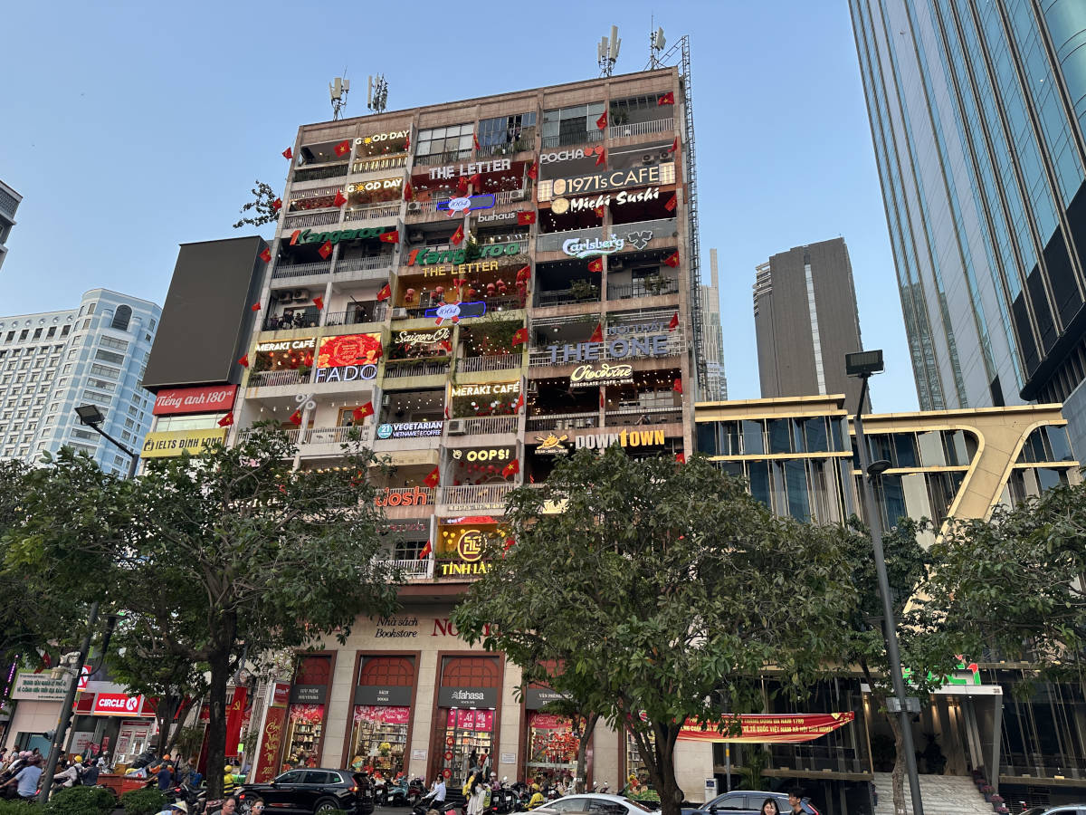 As we walk to dinner at the Amigo Steakhouse grill restaurant for our farewell dinner with the main trip group we pass this landmark building along Nguyen Hue street. Tomorrow we fly to North Viet Nam for our post trip. 5:37
