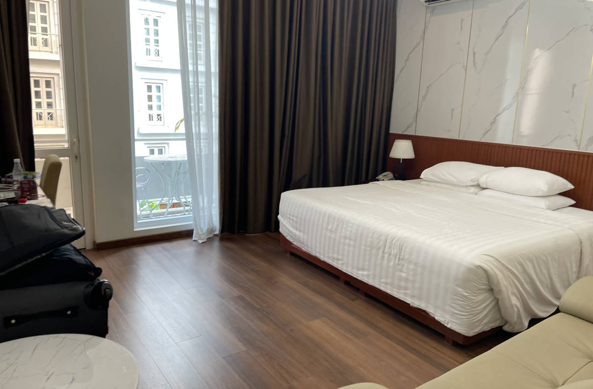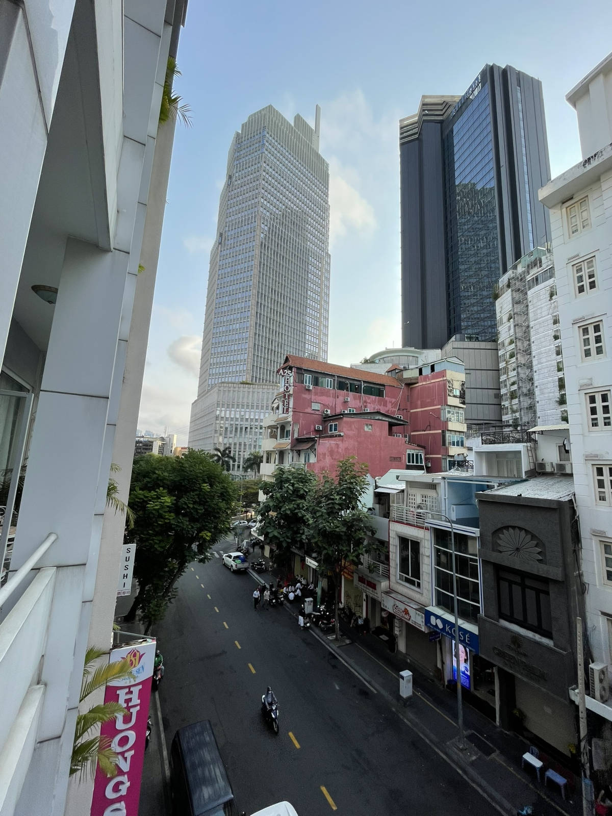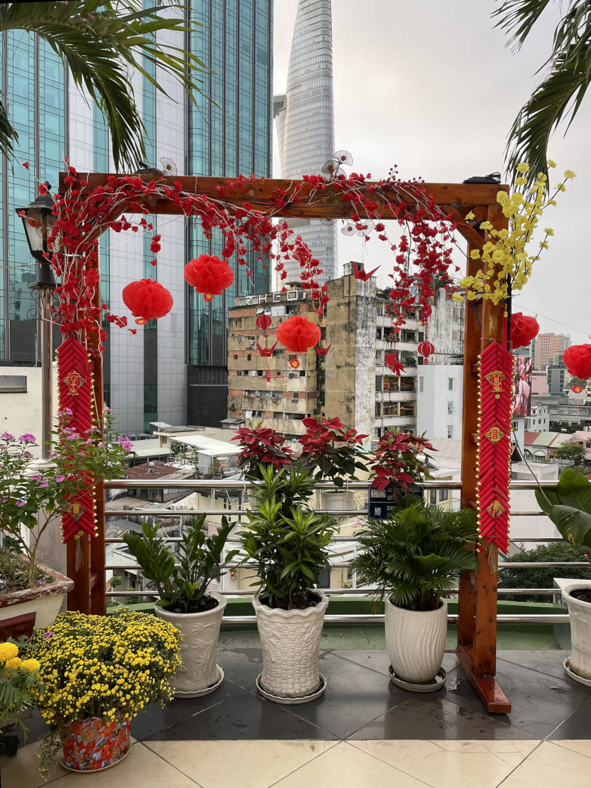 We arrived at our hotel the evening of Jan 31st. This is our view the next morning from our outdoor rooftop breakfast area at the Huong Sen Hotel Saigon. 7:01am