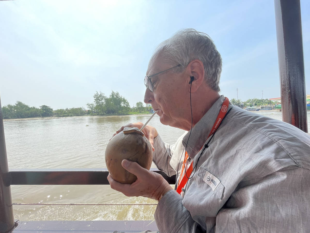 Emerson drinking from a coconut on our excursion boat. 11:13am