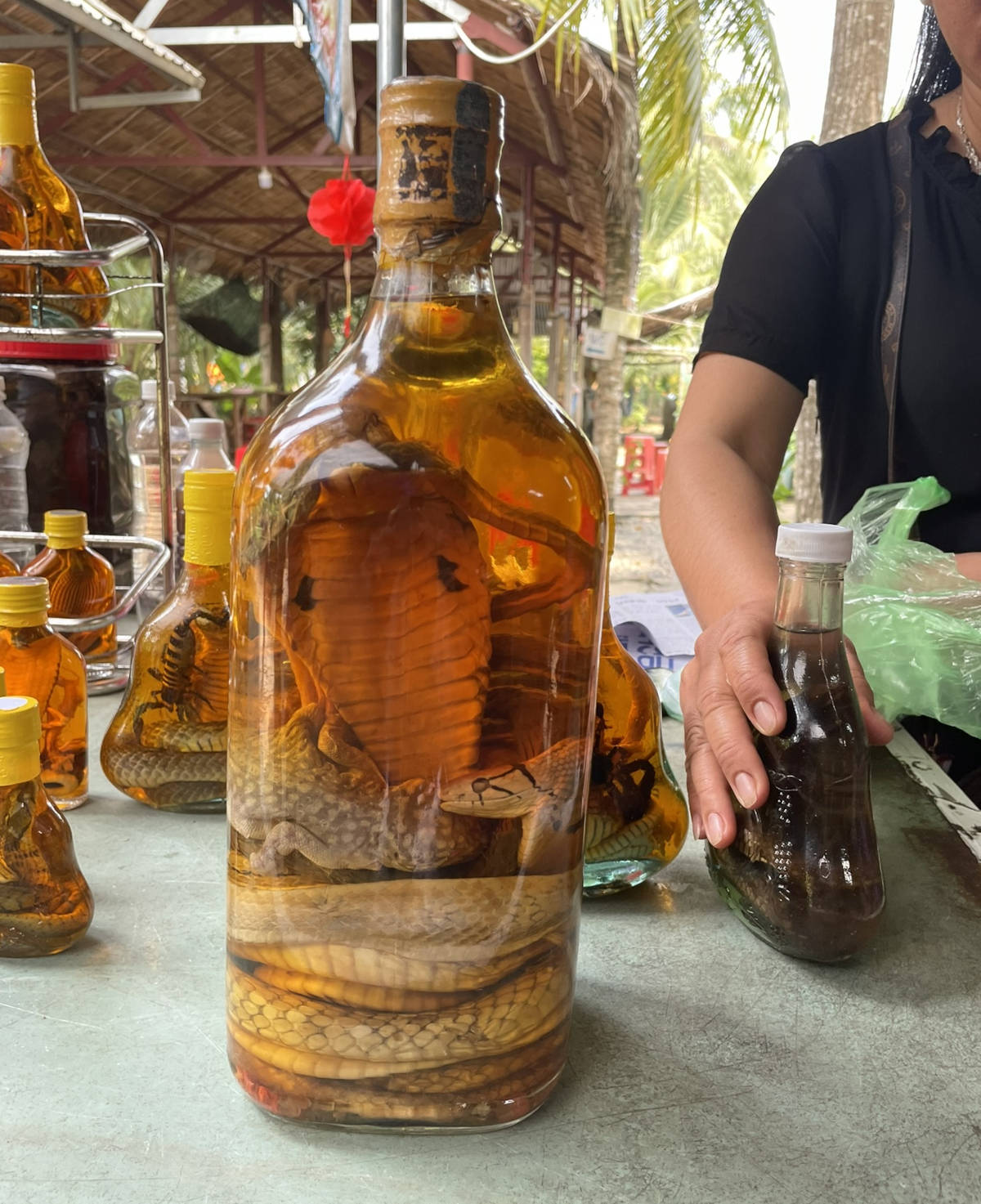 Cobra in whiskey bottle. Not something we wanted to try. 12:24