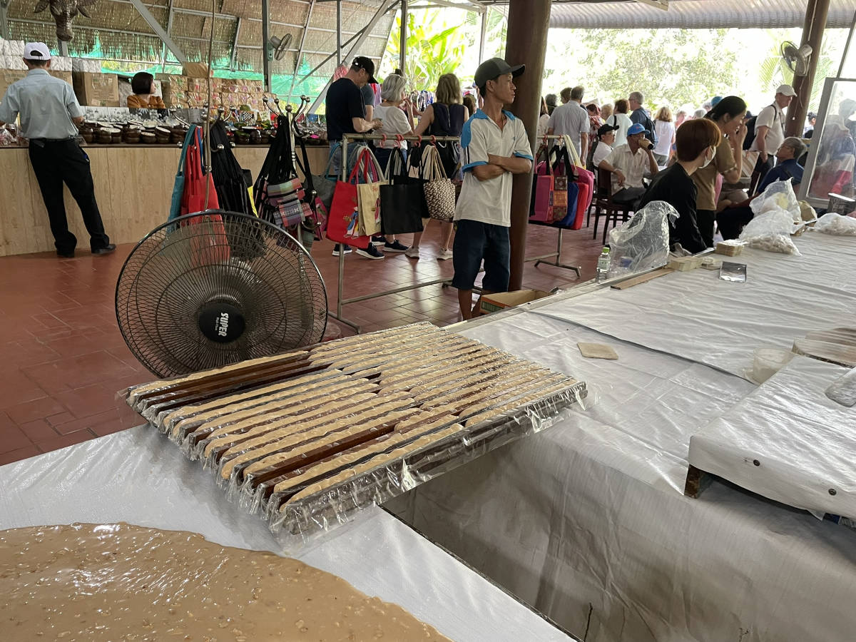 We're taken to this coconut candy workshop to learn about making sweet keo dua.