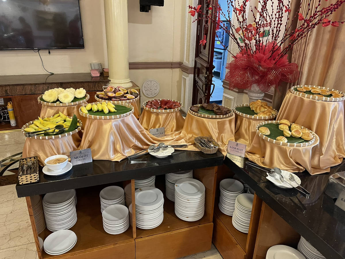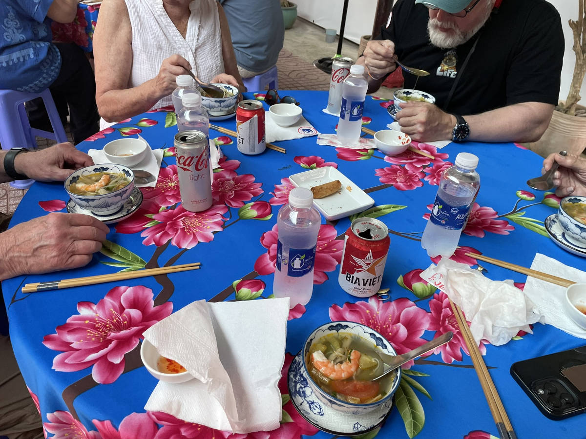 Breakfast spread our second morning served buffet style. In Vietnam very strong coffee with sweetened condensed milk is often provided and we very much enjoyed this at breakfast. 7:35