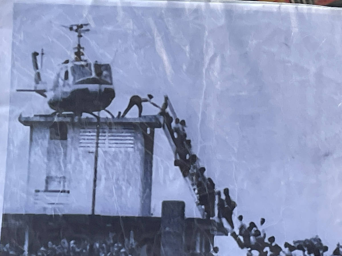 Shirley tells us that the top right hand corner structure was where CIA officers helped evacuees onto an Air America helicopter. The last US evacuation helicopters left from here on April 29 1975. Saigon was captured by North Vietnam on April 30.
