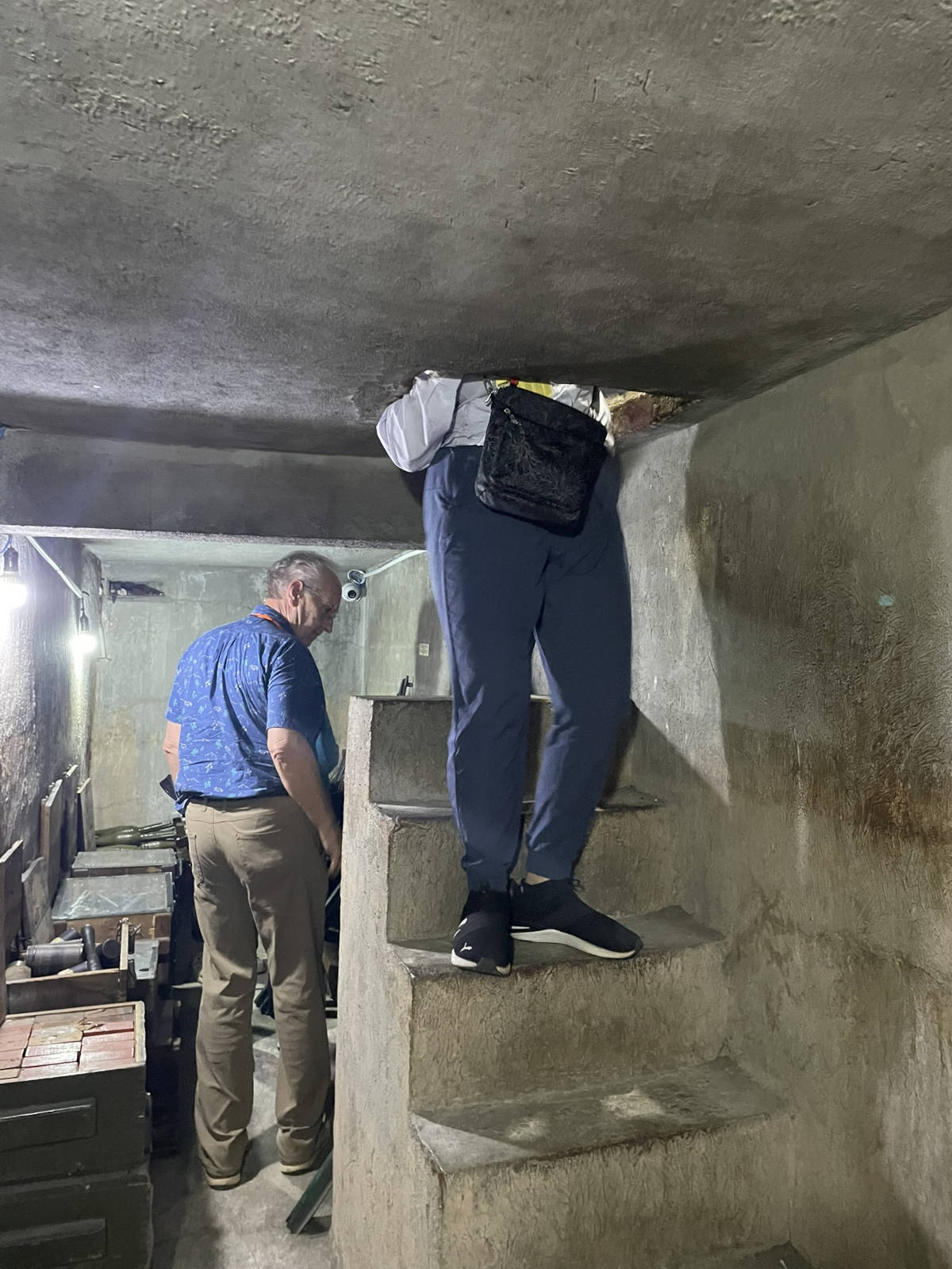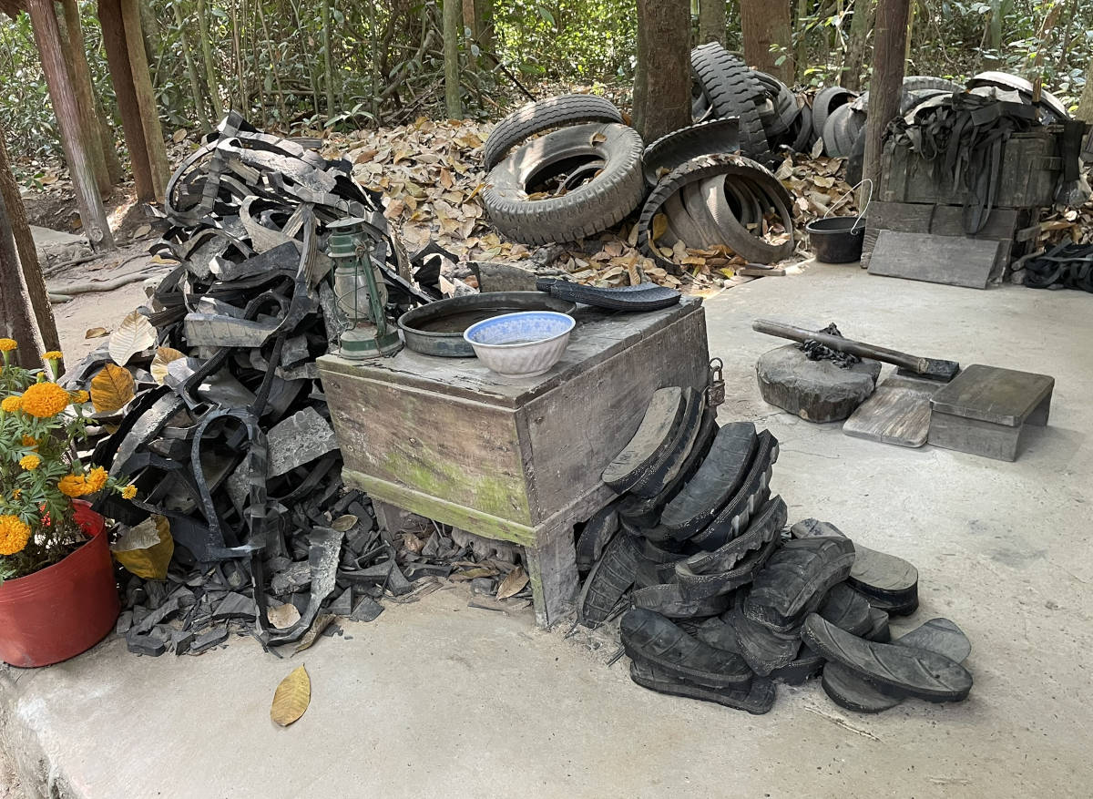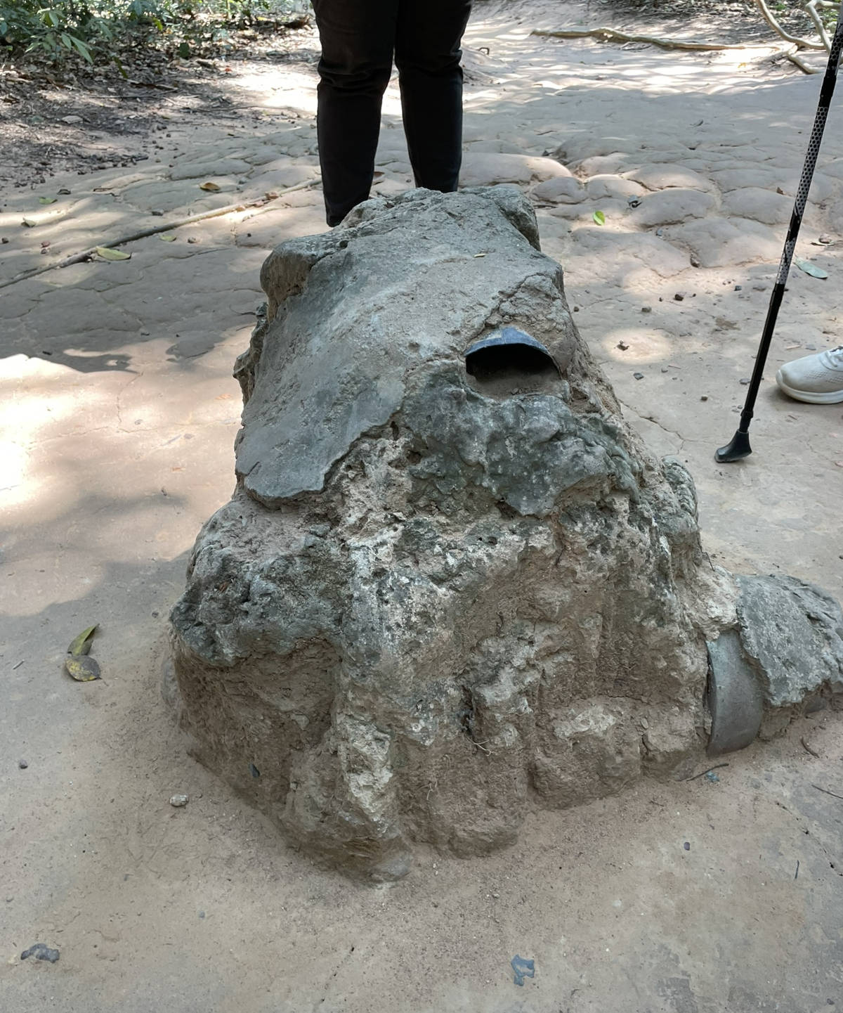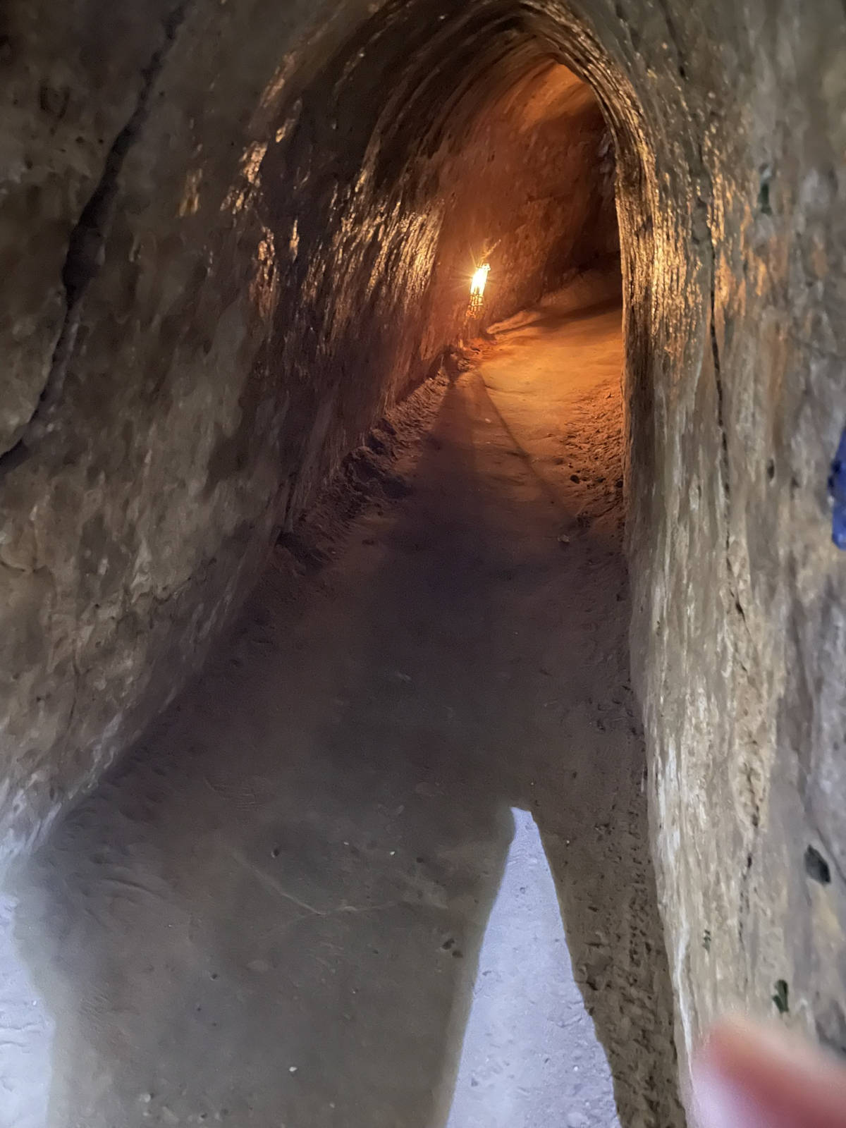 A typical tunnel that has been made a bit bigger to accomodate tourists. It is part of 125 miles of an underground maze where thousands of fighters hid, worked and fought from during the Vietnam War (referred to by the Vietnamese as the American War).