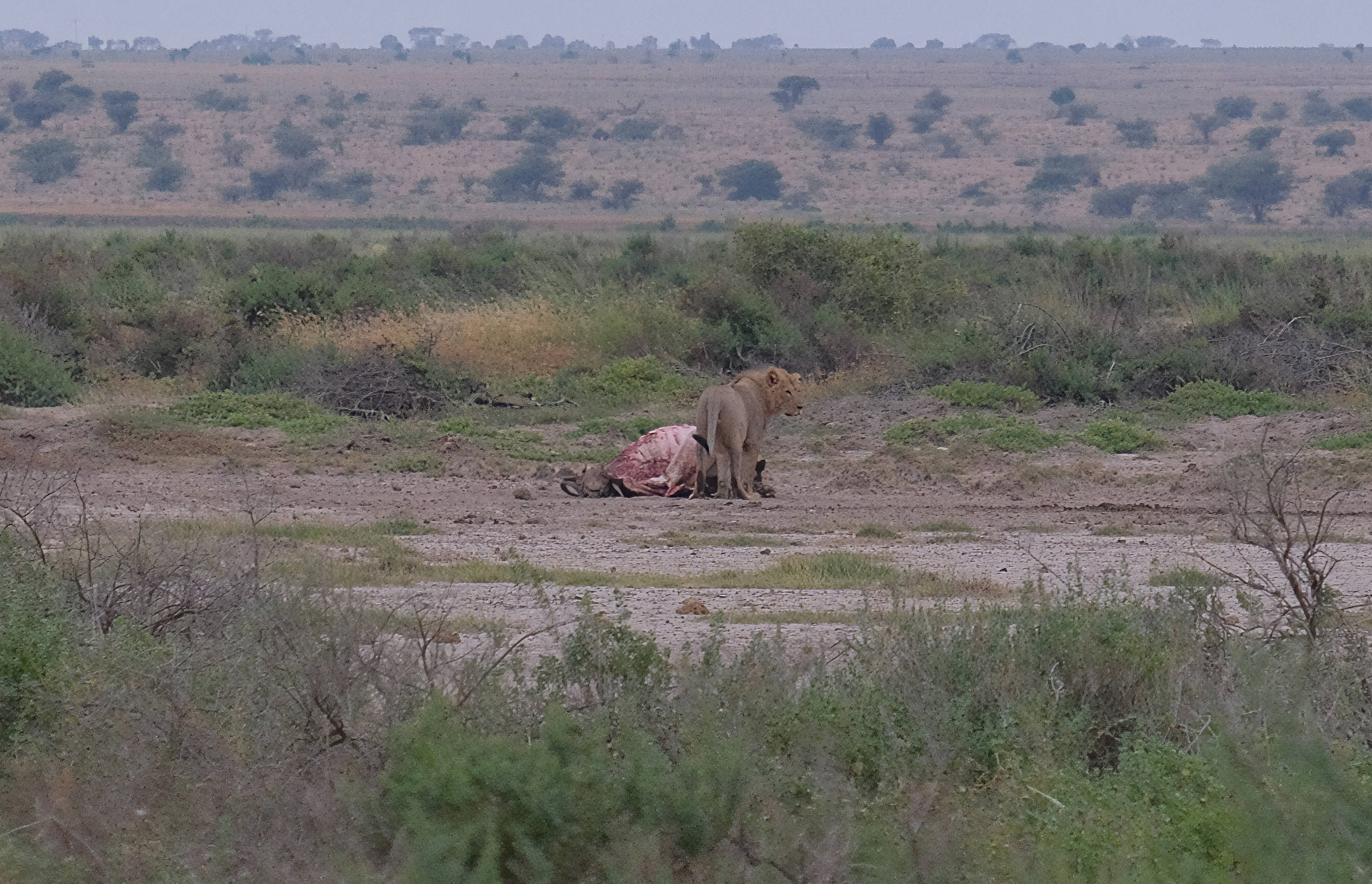 A lion with a kill. Hyenas were around watching and waiting. 5:39