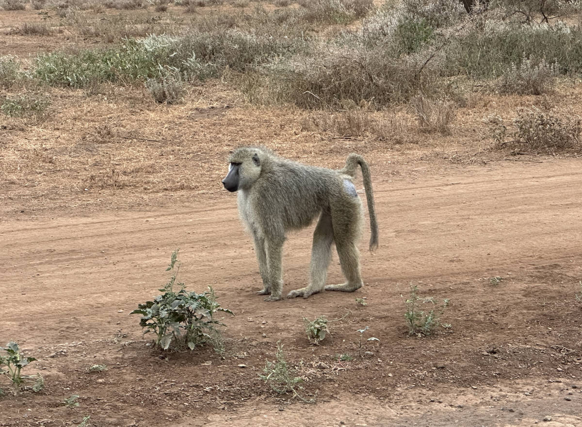 Baboon on the side of the road.