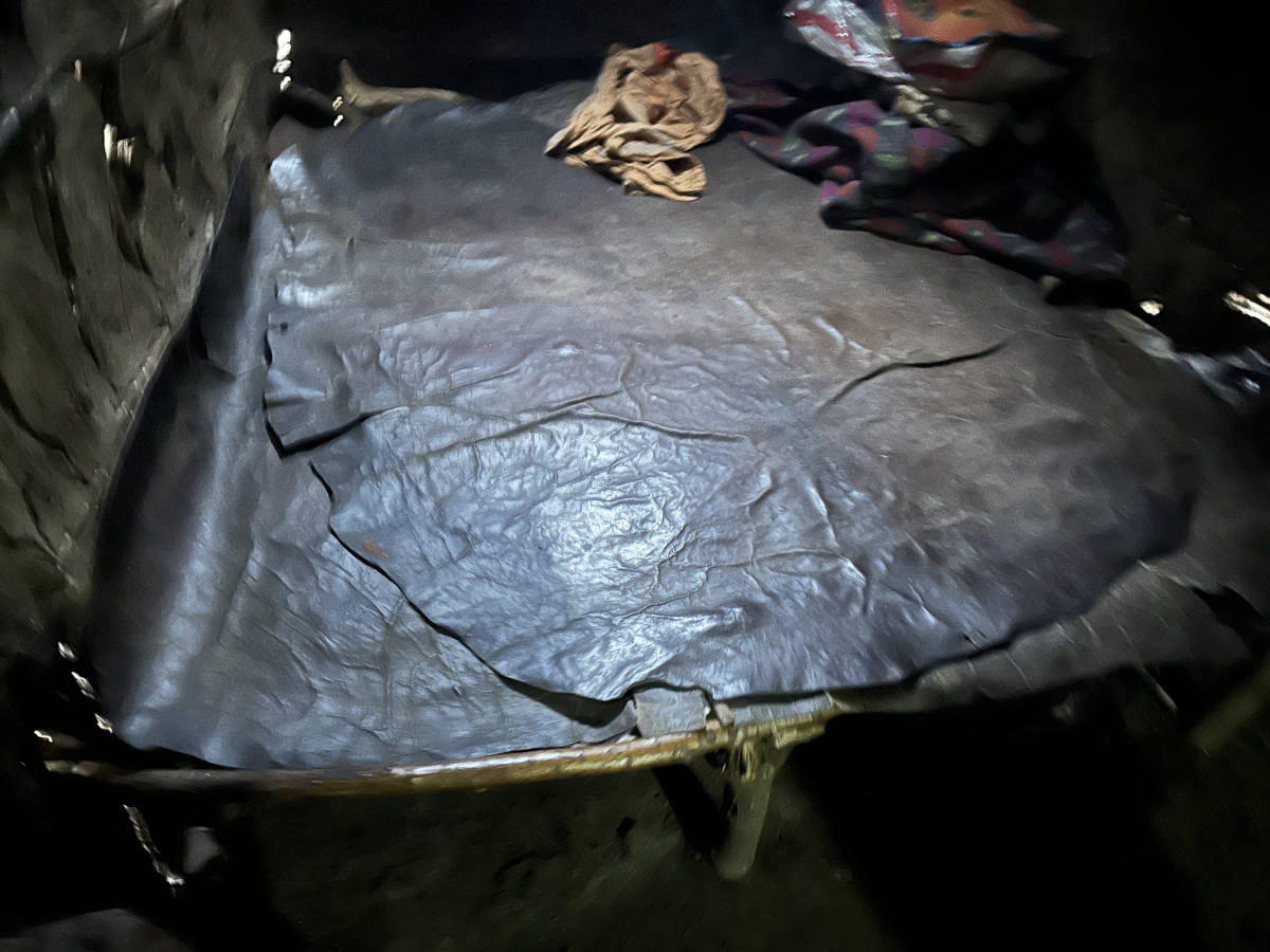 A sleeping platform covered in a cow skin. Girls sleep in the same house as the parents and boys sleep in a separate house. 8:44
