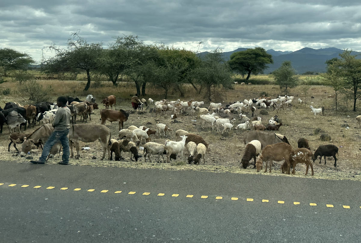 There was livestock and small kids tending to them along the road pretty much wherever we traveled. Kids 4-5 years old start tending sheep and goats close to their house. At 10 or 11 they start herding cattle.