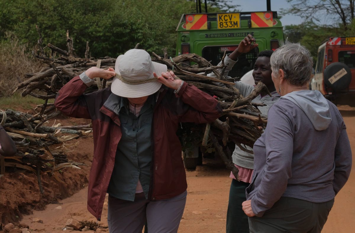 Our guide pulls over and asks if we could try and carry the load. Linda giving it a go. 11:59