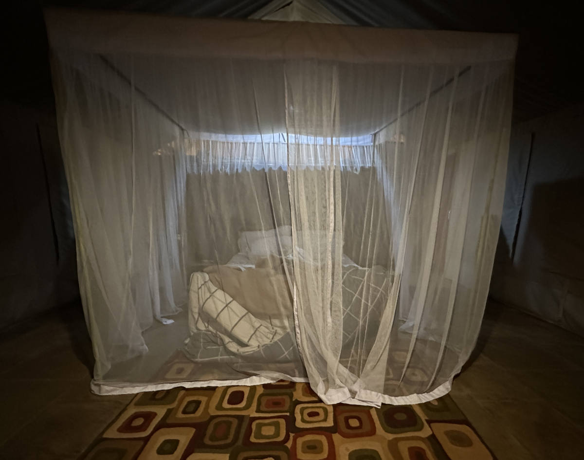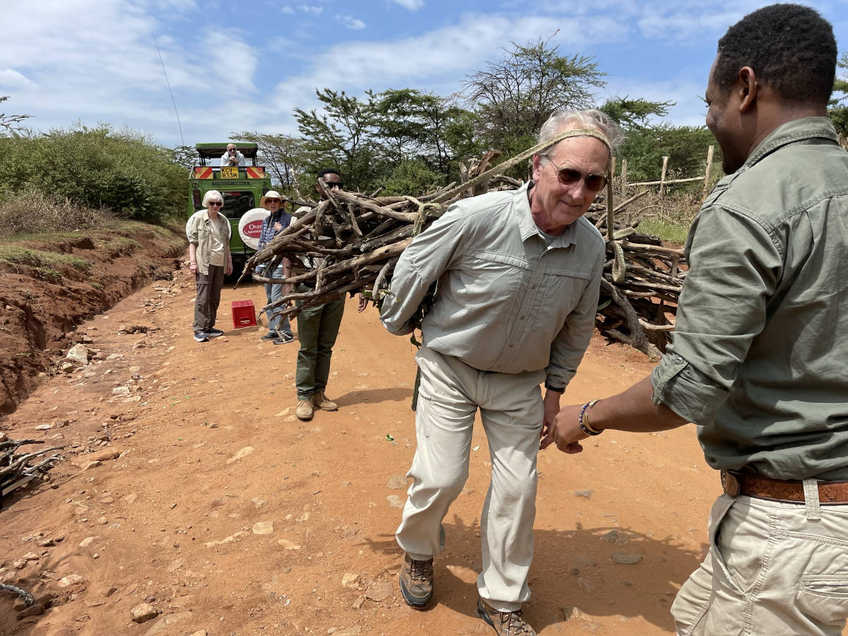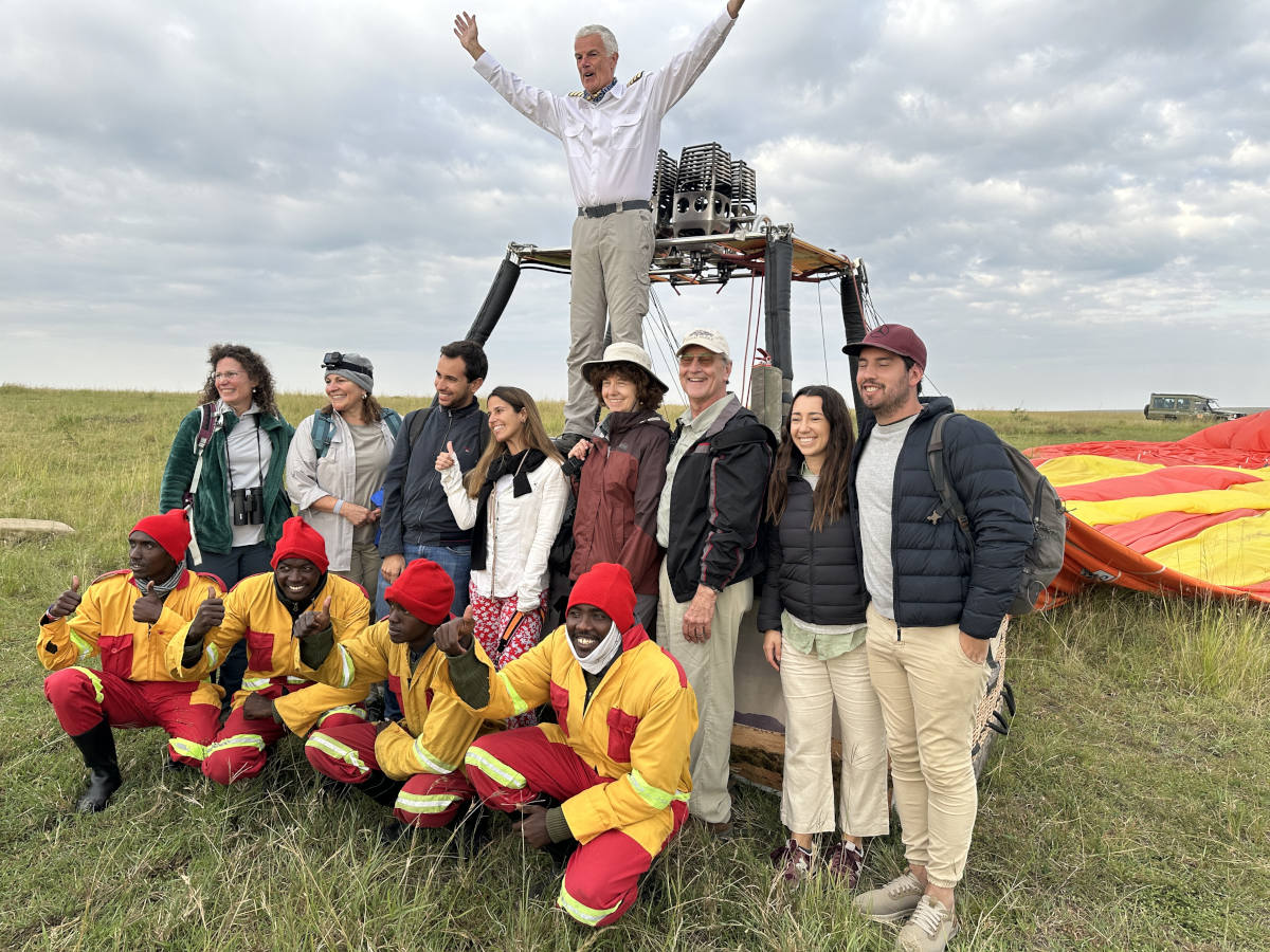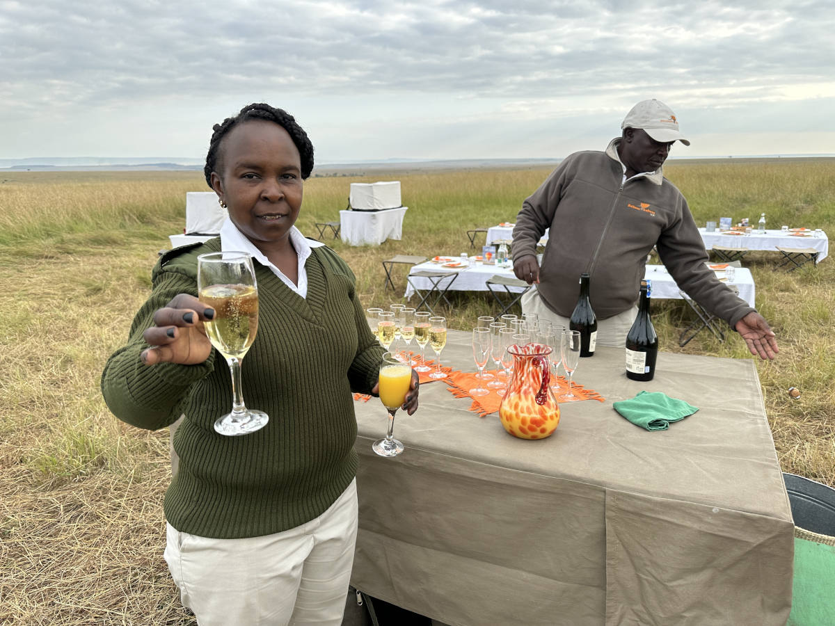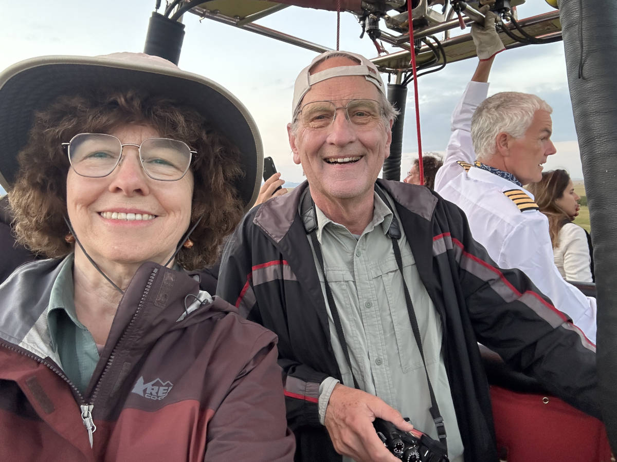 Linda and Emerson are going for a balloon ride over the Masai Mara. Advised not to be outside without an escort after dark, we found our escort ready for us outside our cabin promptly at 4:15am, to accompany us to the main lodge! (BTW-we were given a whistle attached to our room key to use if we had any problems at night).