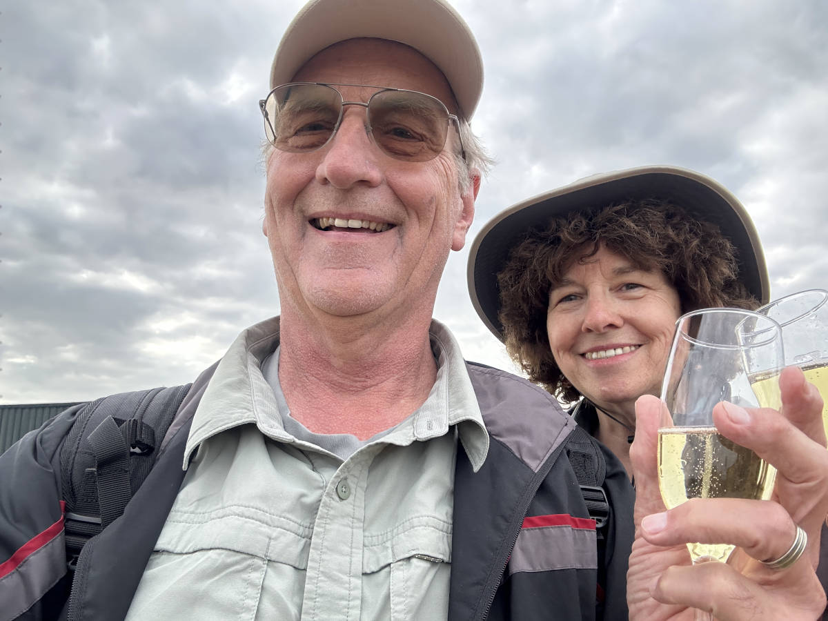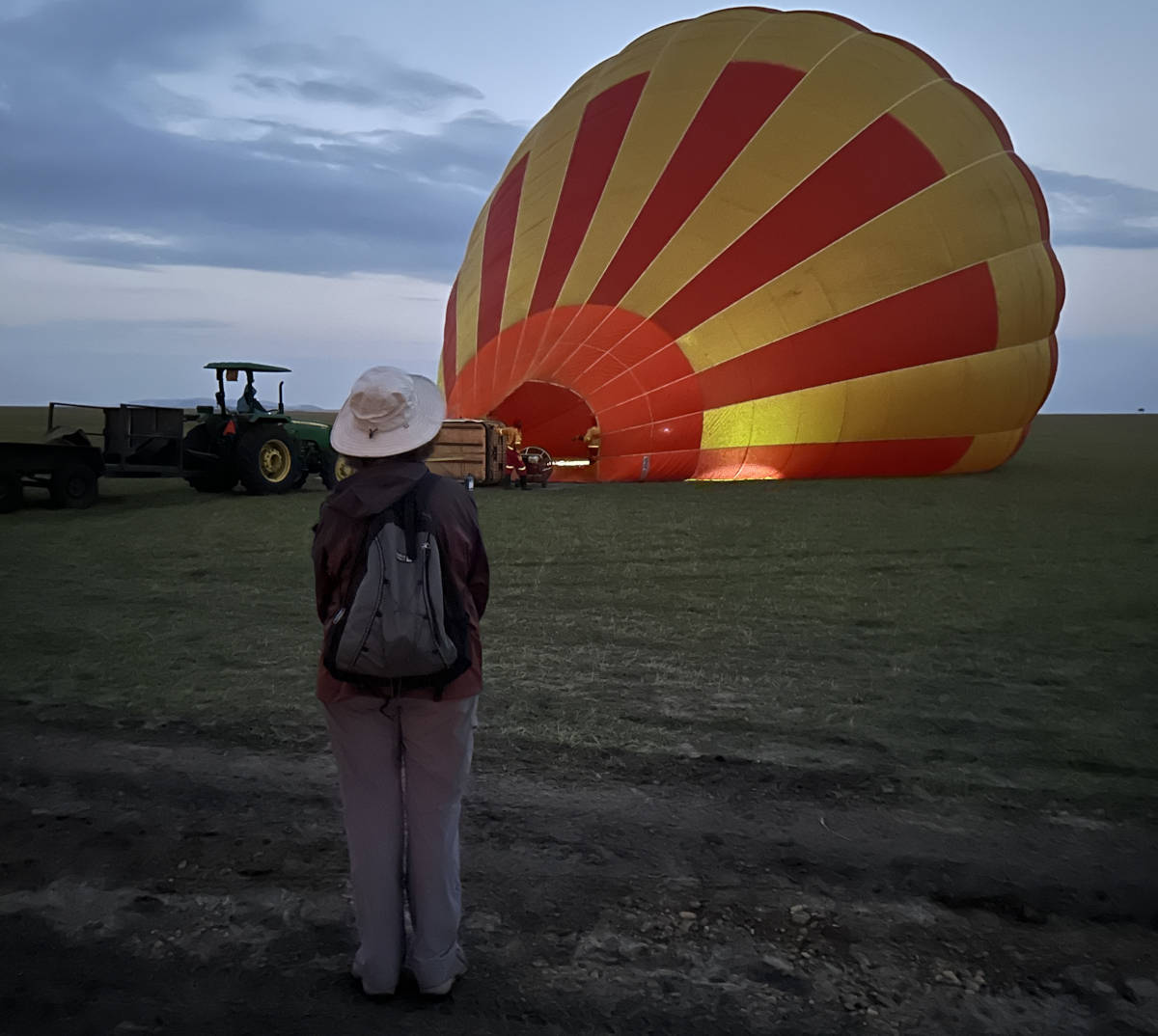 We arrive at the launch spot around 6am. Linda watches as they prepare the balloon.
