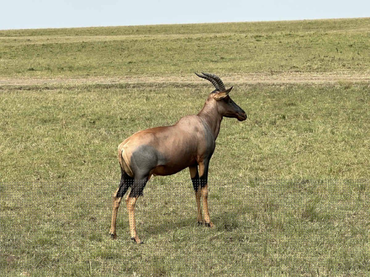 Topi seen on the way to meet up with our OAT group. We're told animals bob their heads up and down to help keep flies from getting into their nose. 9:42