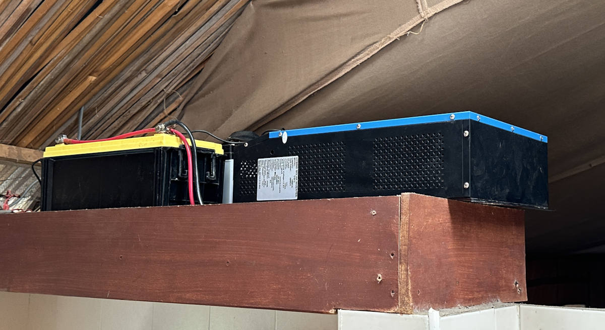 A battery and converter in our cabin. The cabins ran completely from the solar panels on top of each cabin.
