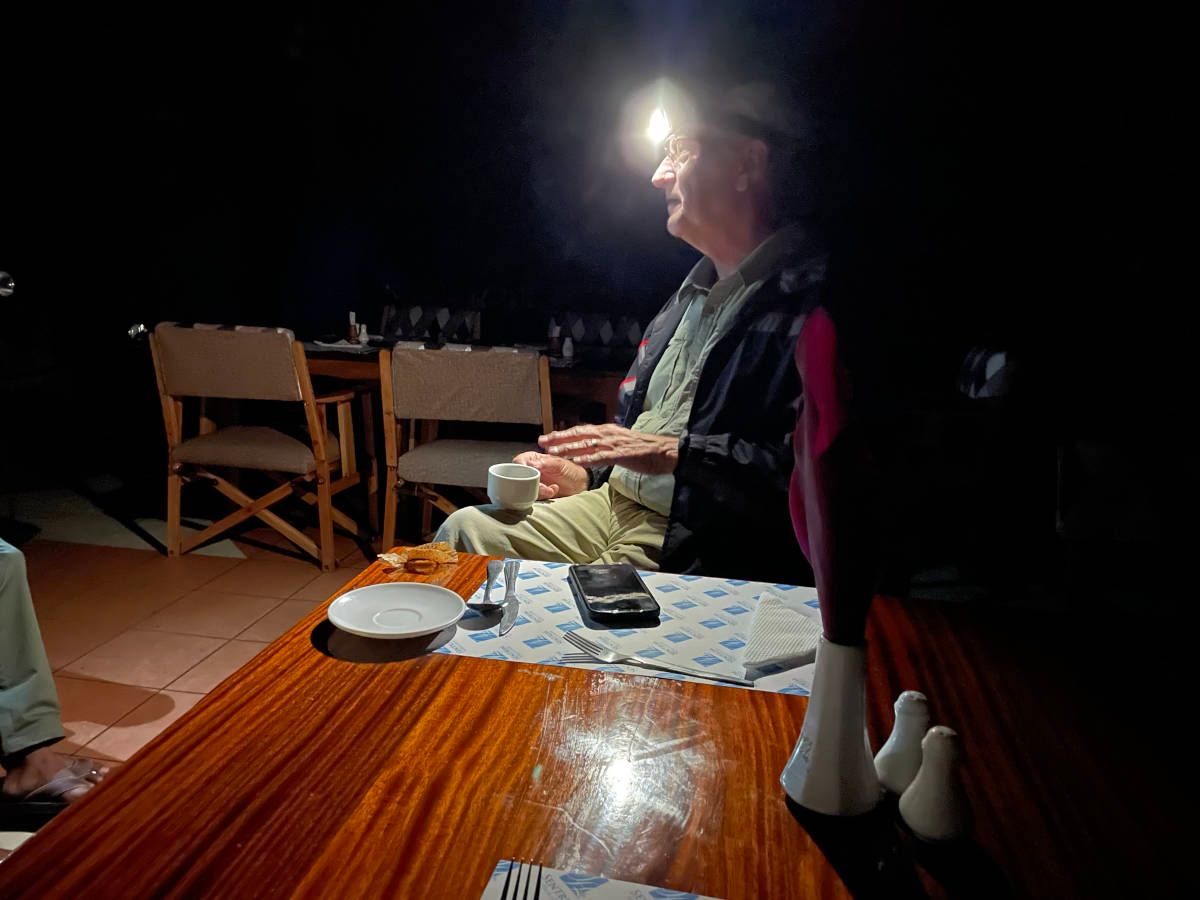 We met up with Allen in the dining area where we enjoyed fresh coffee and sweets. Headlamps were necessary as electricity was not yet on at 4:30am!
