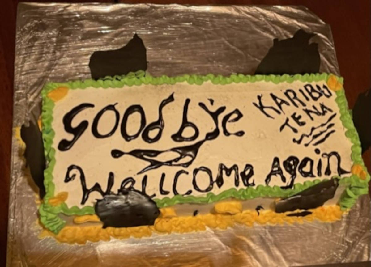 Goodbye cake from Sentrim Mara folks presented by the Masai!