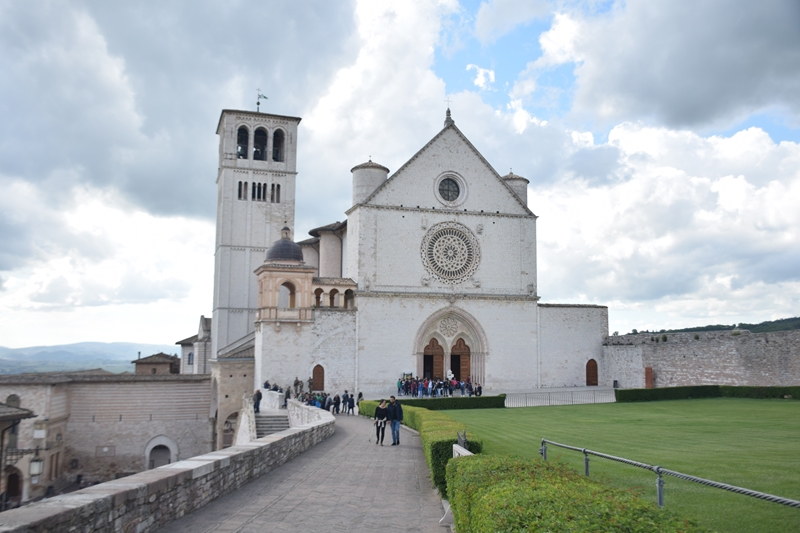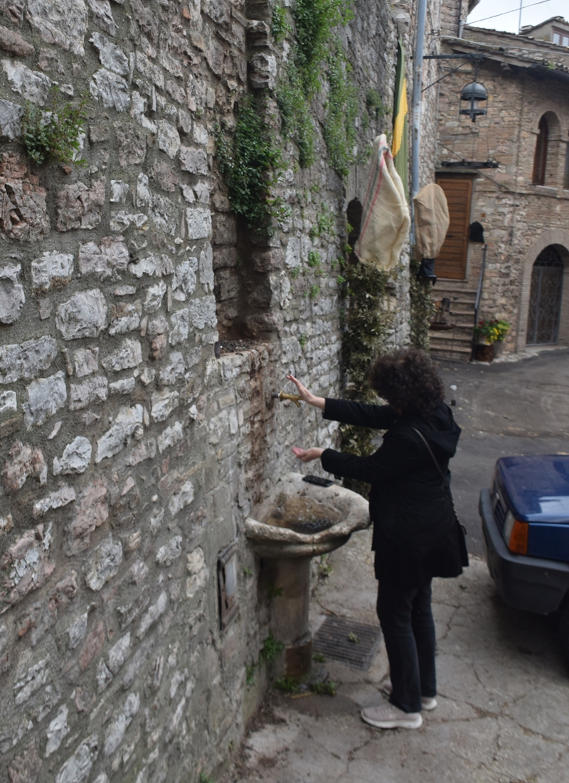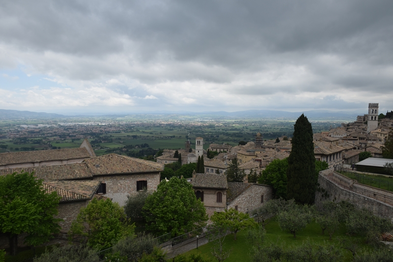 We took a second class train from Rome to Foligno then a 10 minute train ride to Santa Maria del Angeli where we got a bus for the short trip to Assisi stopping at the Piazza Matteotti following the Rick Steve's guide.