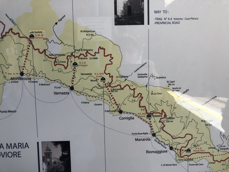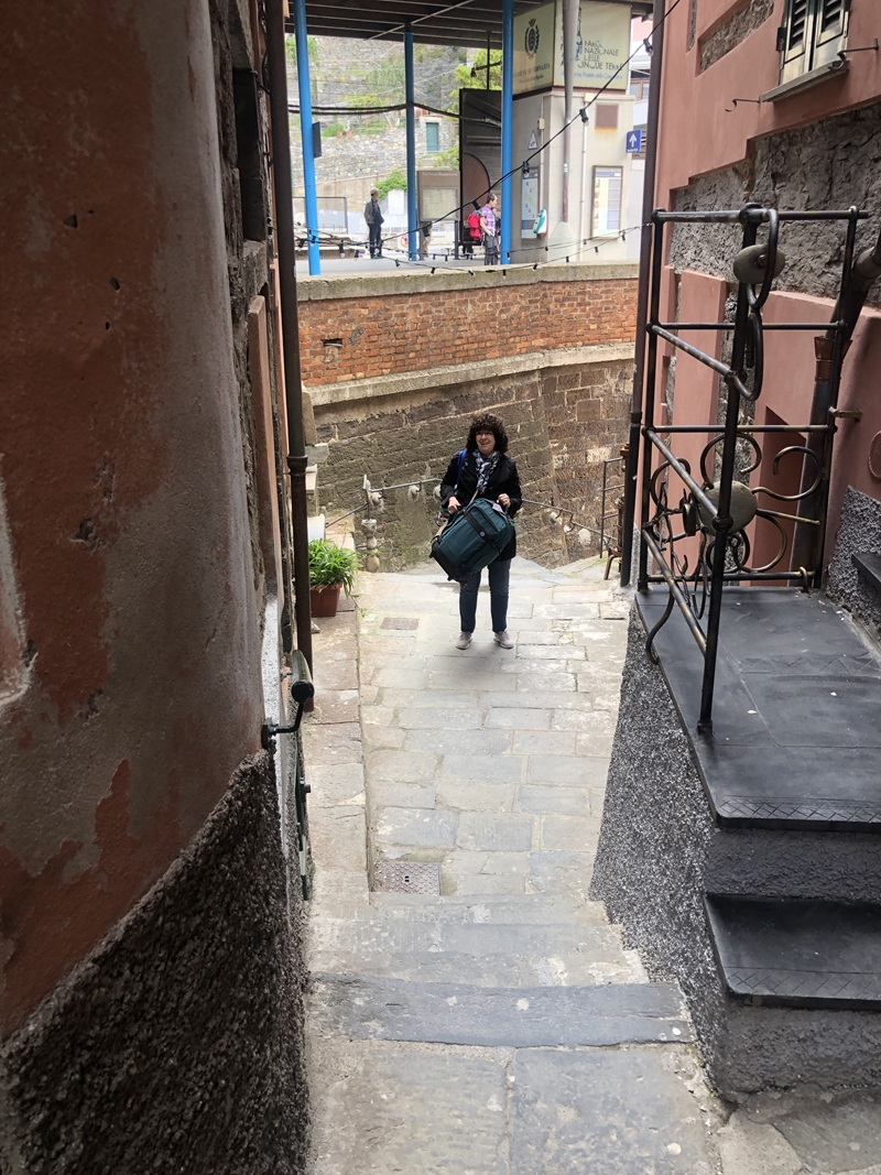 We hit the trail. We took the train to Corniglia and started on the trail to Manarola. Linda took a shortcut from Volastra (a bus) as some people we met said the trail ahead was really difficult. Not so, it was the easiest section. I wonder what the people we met thought of the rest of the trail. After several texts and wrong turns in Manarola we got back together.