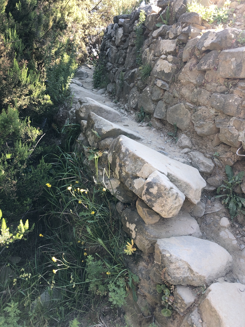The trail is crossed by one of the tracks used to move vineyard workers.